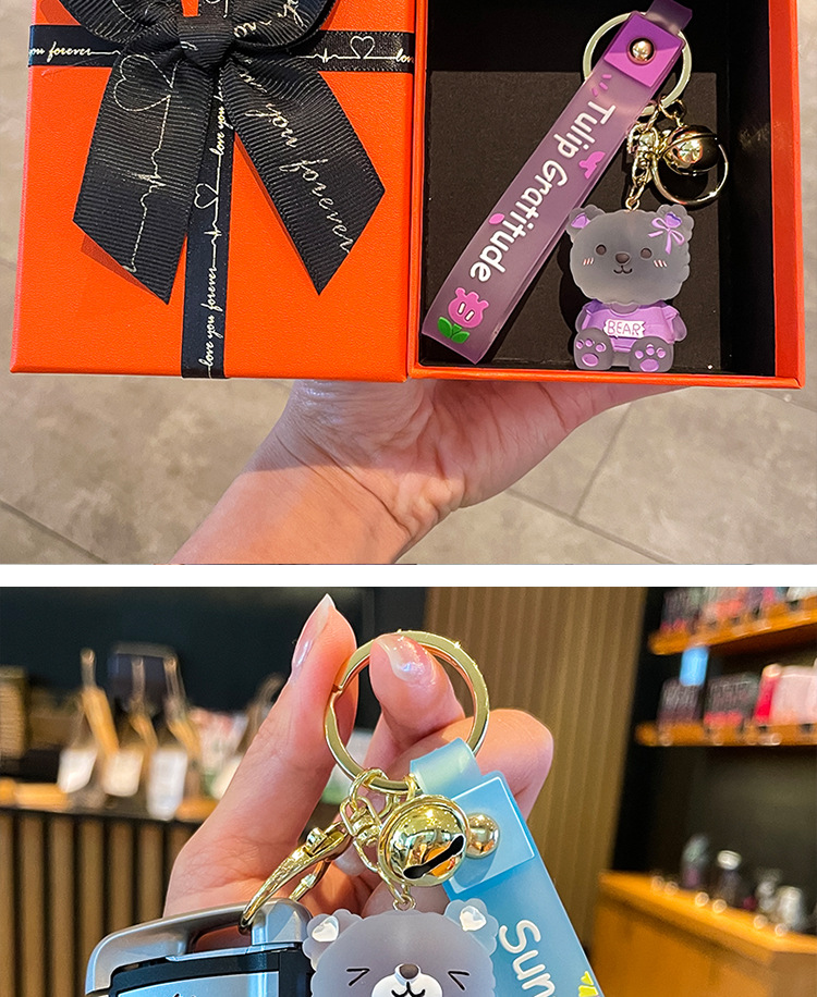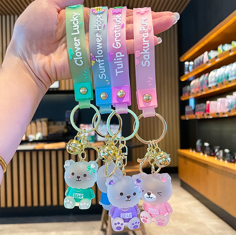 2024 인터넷 축하 만화 곰 키 체인 절묘한 여성의 귀여운 학교 가방 펜던트 보석 커플의 자동차 키 체인스토어 가기