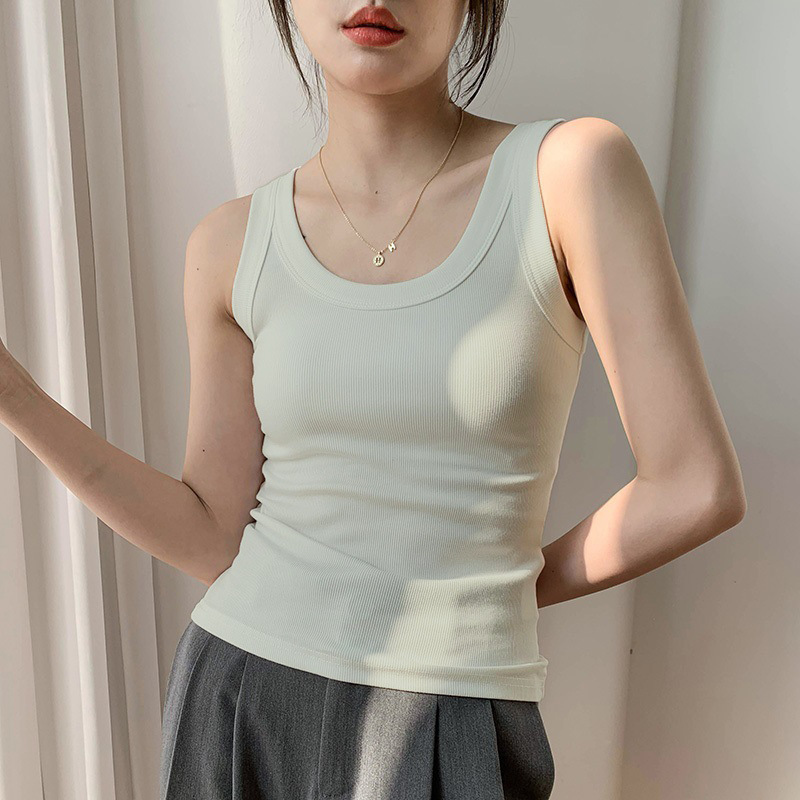 가슴 패드가 달린 니트 눈부심 방지 카미 솔 조끼 여성용 여름 외부 아이스 실크 얇은 슬림베이스 셔츠 내부 탑스토어 가기