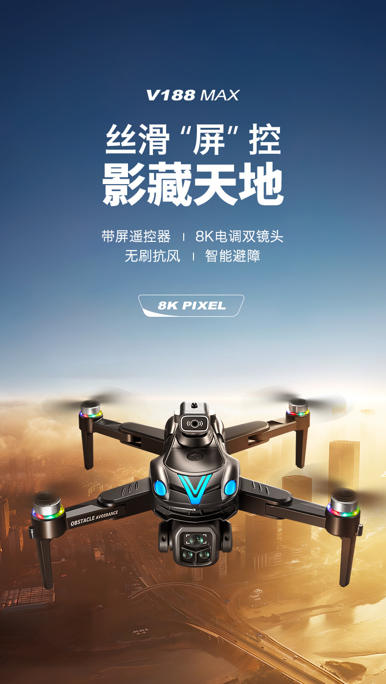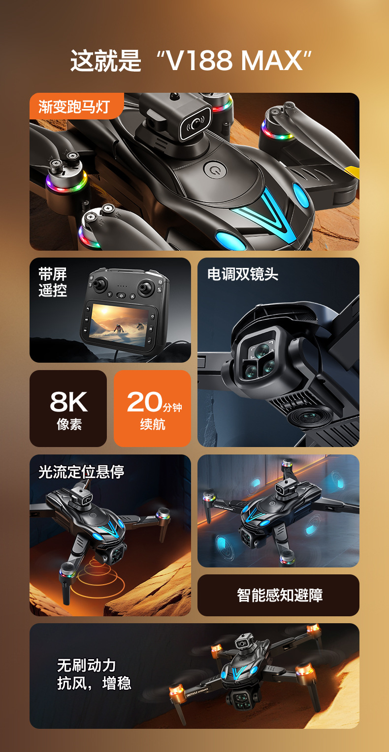 스크린 브러시리스 장애물 회피 항공기 8K HD 항공 사진 장난감 원격 제어 항공기를 갖춘 국경 간 V188MAX 드론스토어 가기