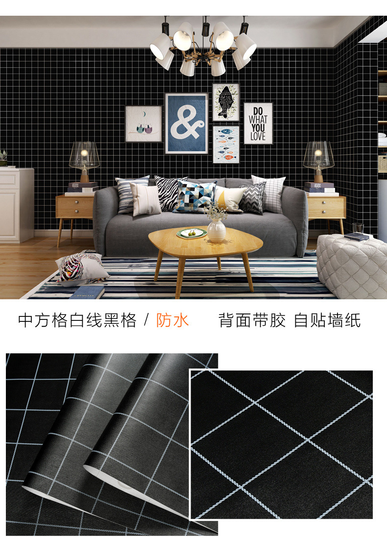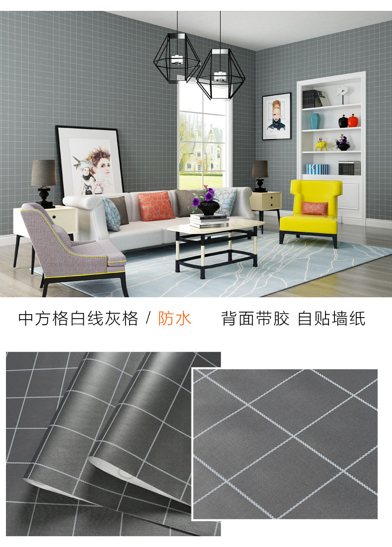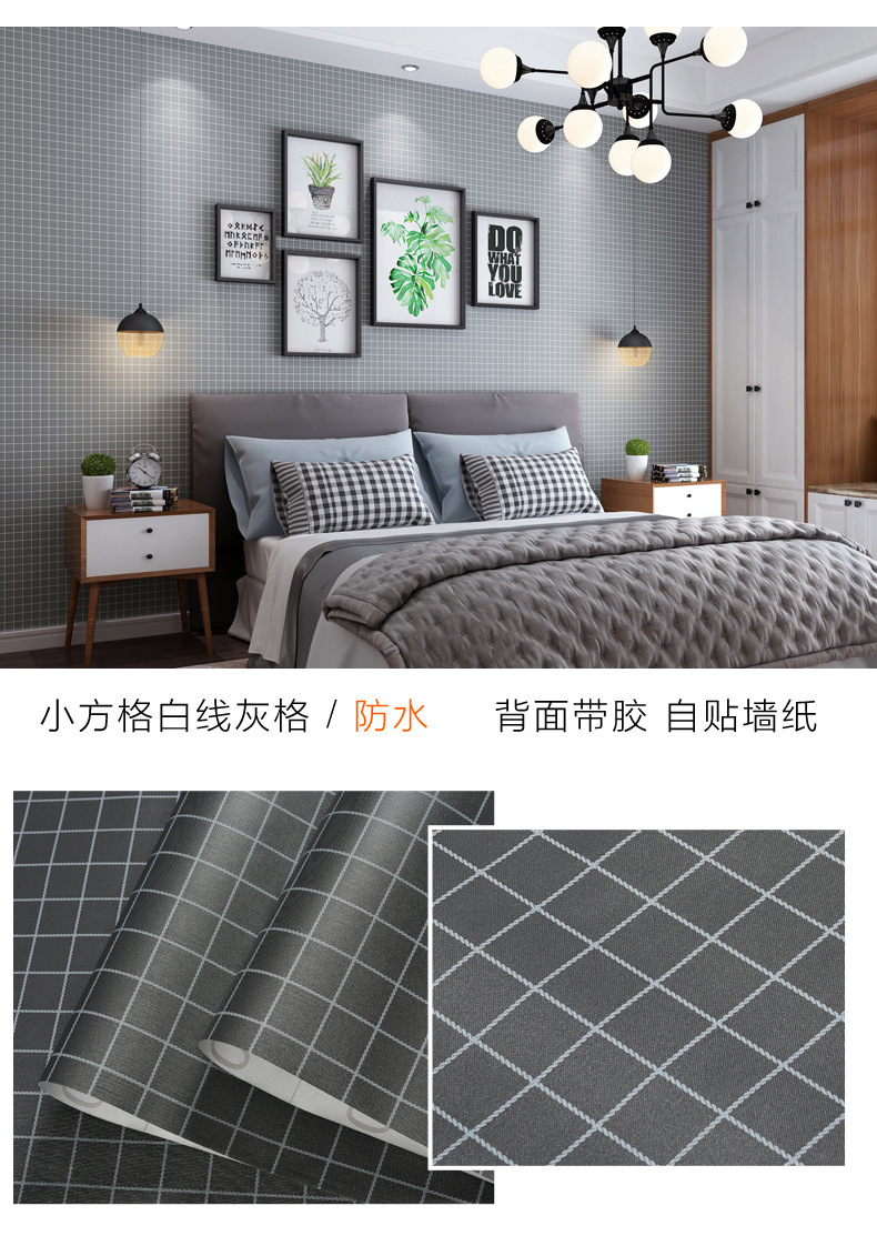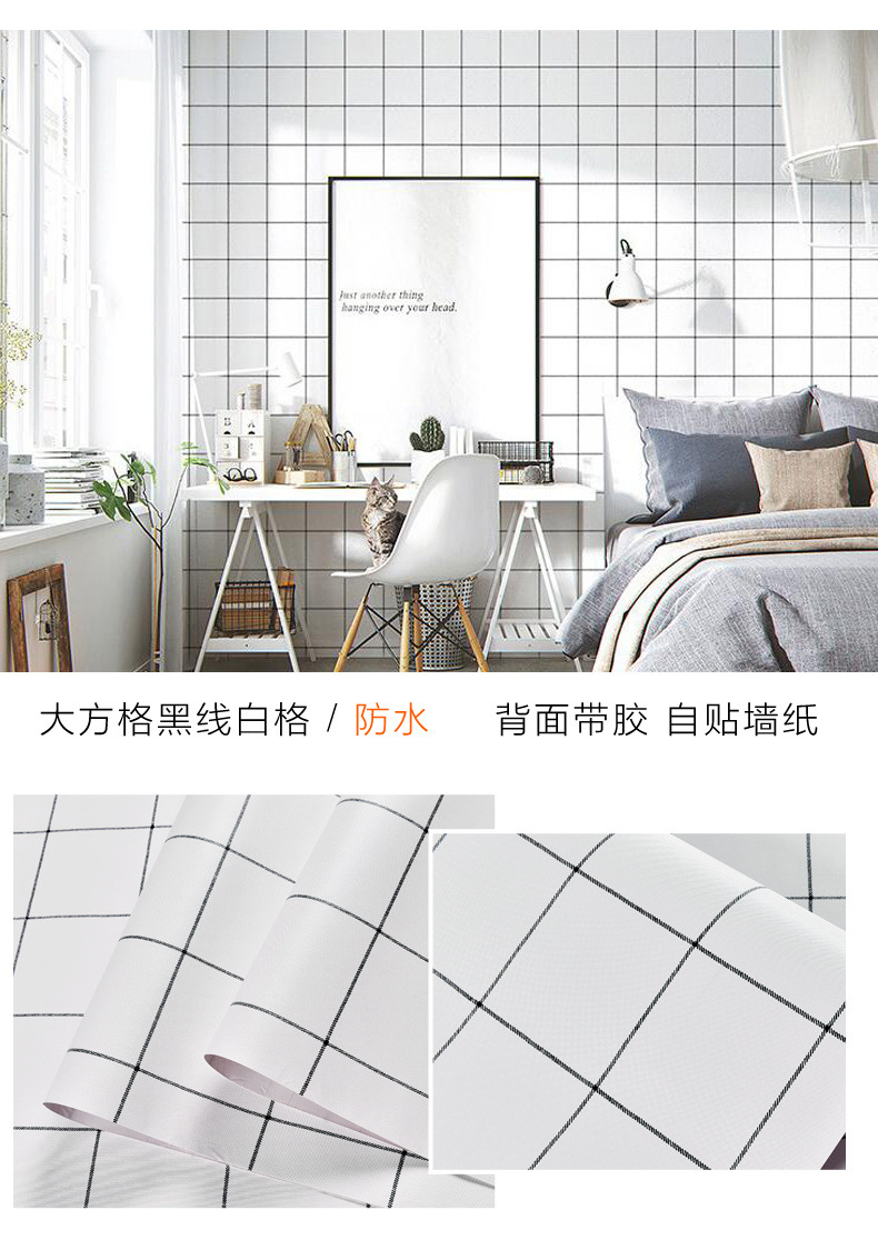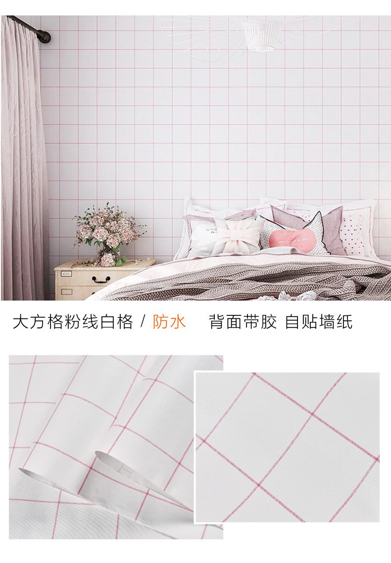 인터넷 빨간색 벽지 자체 접착 격자 무늬 따뜻한 기숙사 벽지 소녀 기숙사 옷장 책상 벽 스티커 도매스토어 가기
