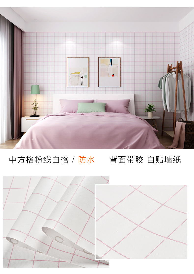 인터넷 빨간색 벽지 자체 접착 격자 무늬 따뜻한 기숙사 벽지 소녀 기숙사 옷장 책상 벽 스티커 도매