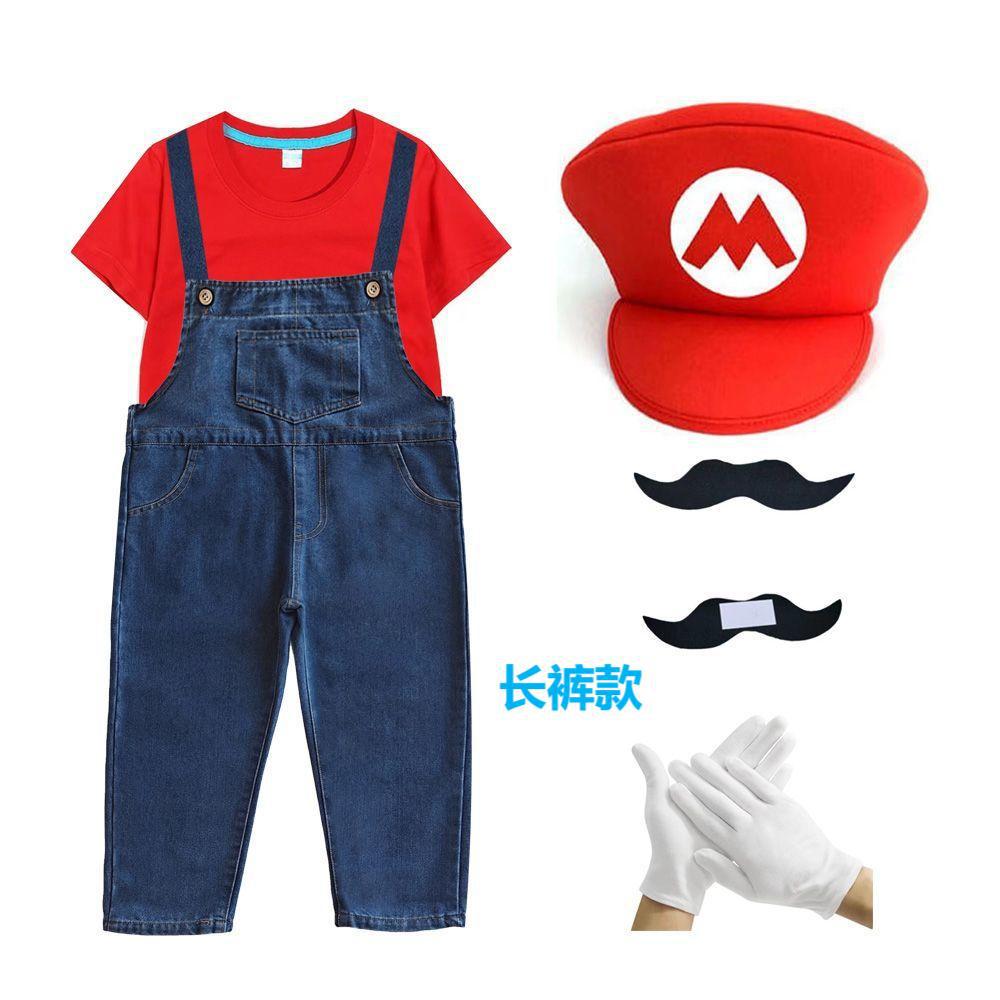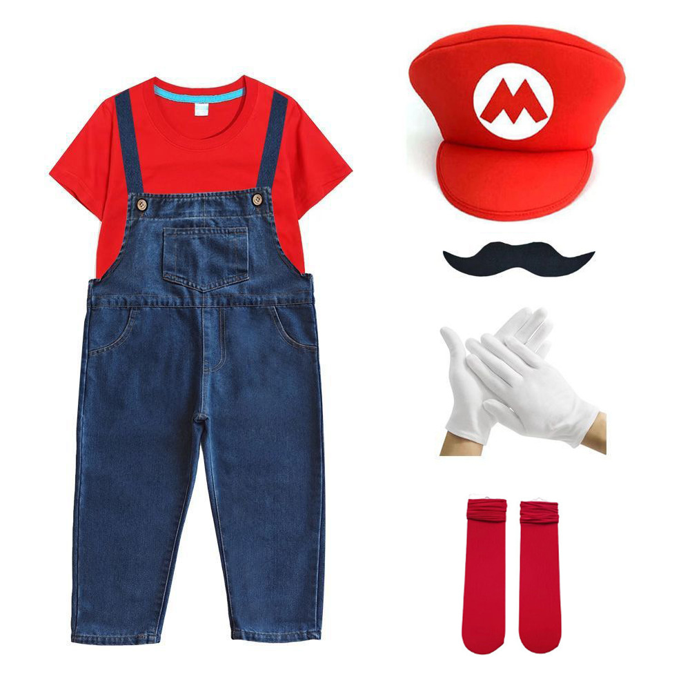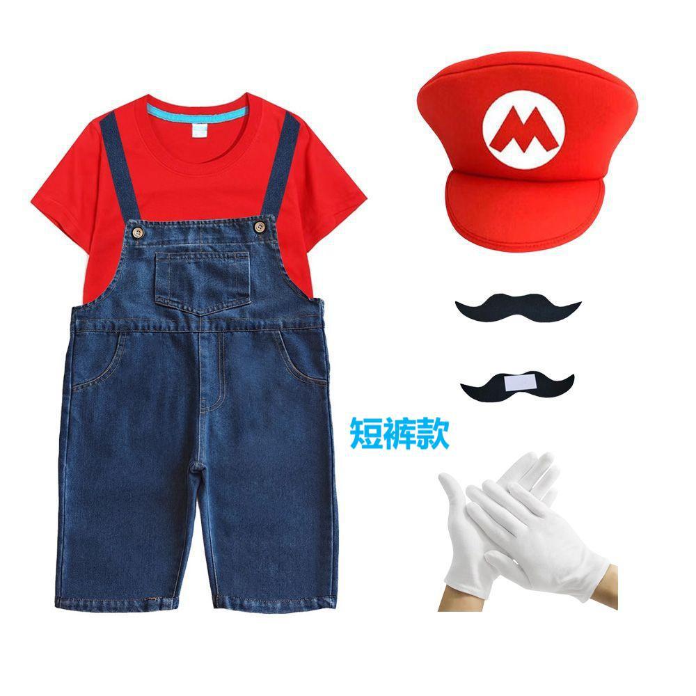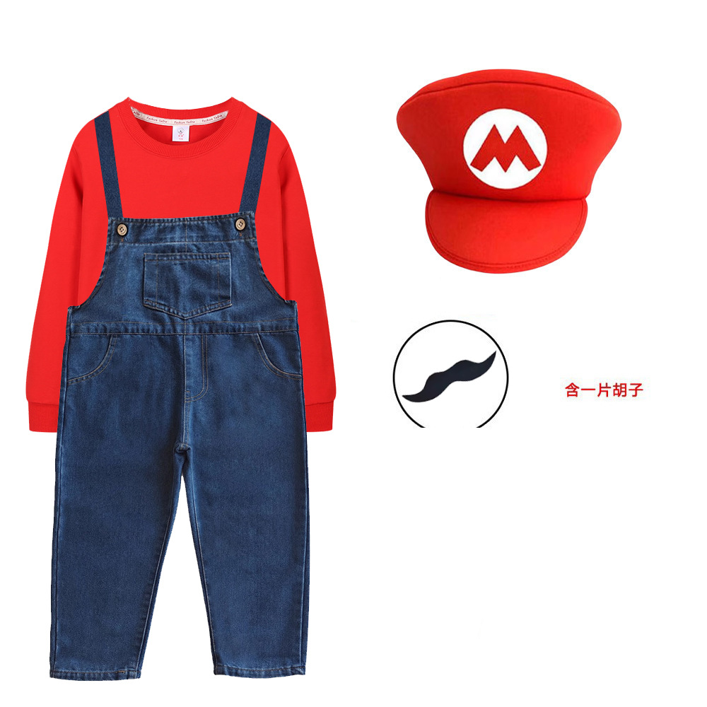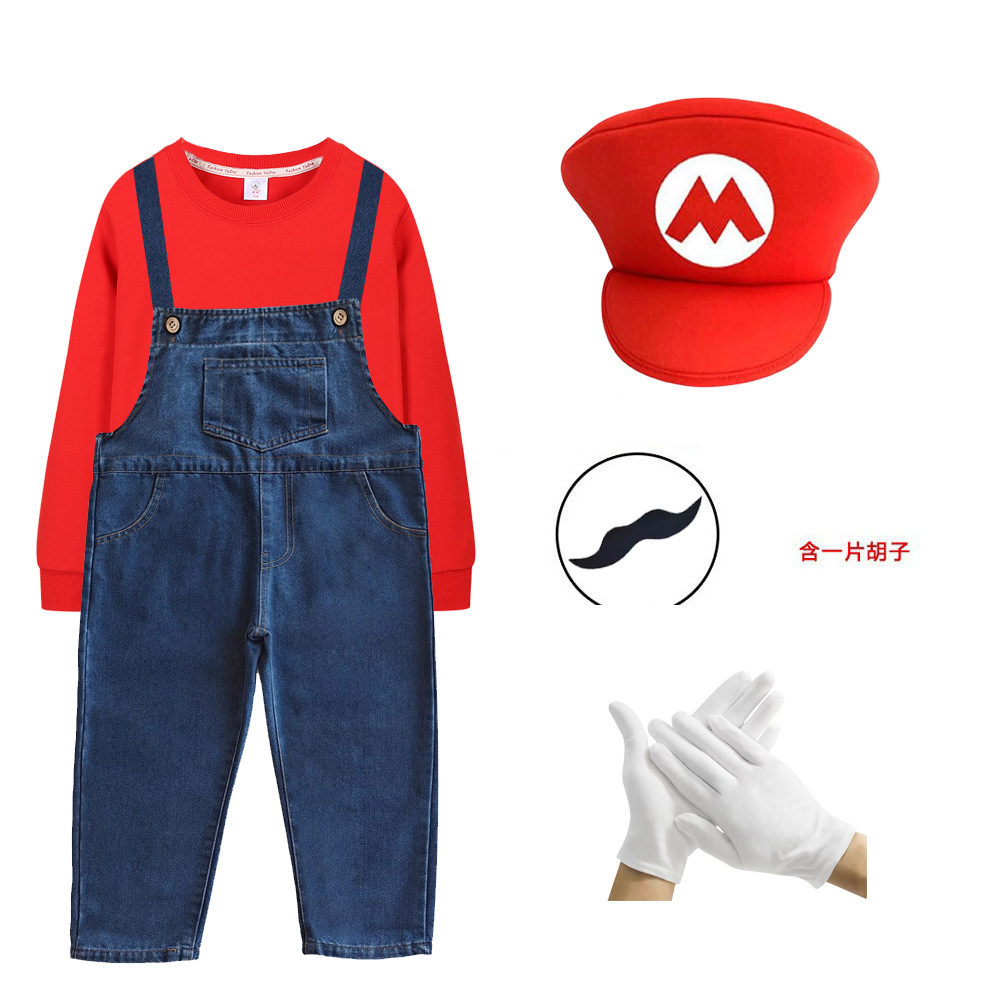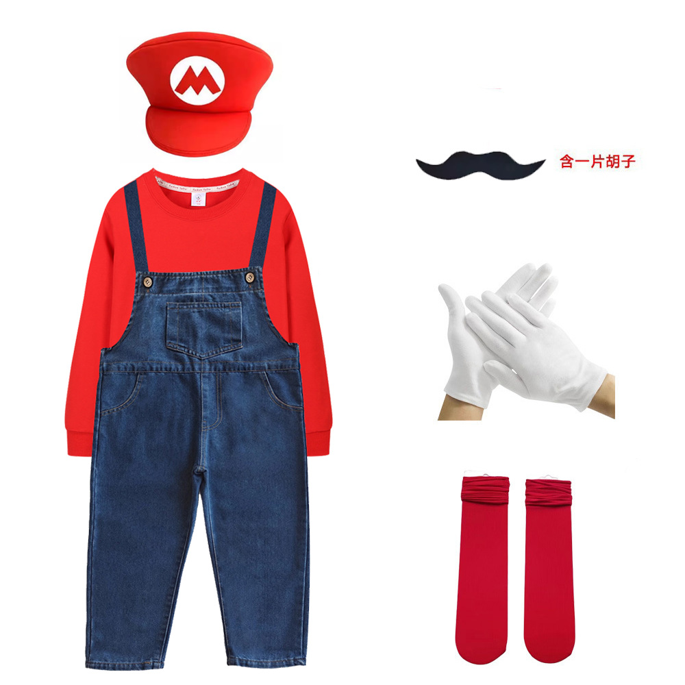 • 파란색 멜빵 바지 + 빨간색 반팔 + 빨간색 모자 + 수염 장갑 빨간색 양말
