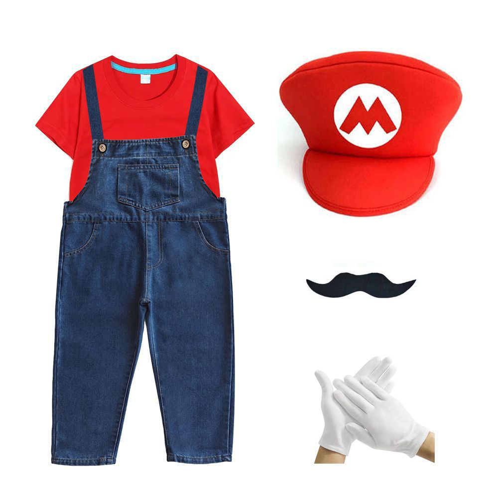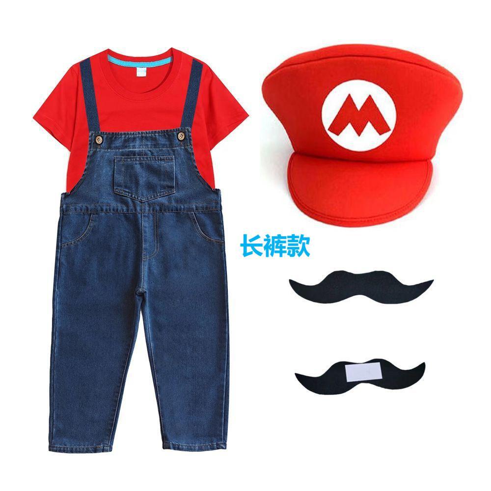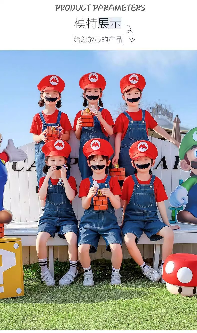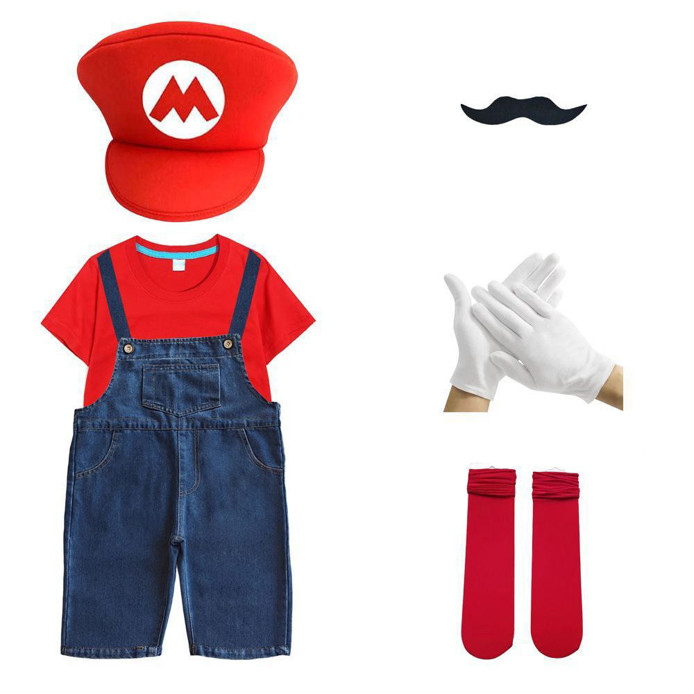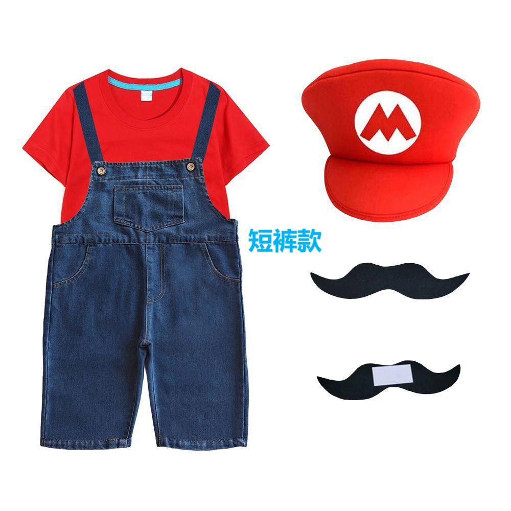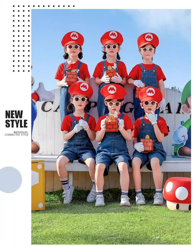 • 파란색 멜빵 바지 + 빨간색 반팔 + 빨간색 모자 + 수염 장갑 빨간색 양말