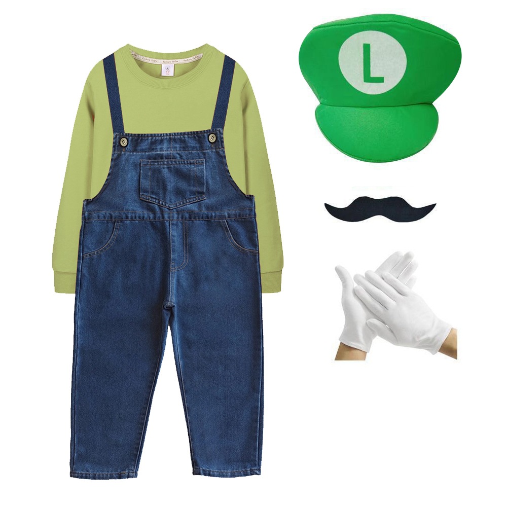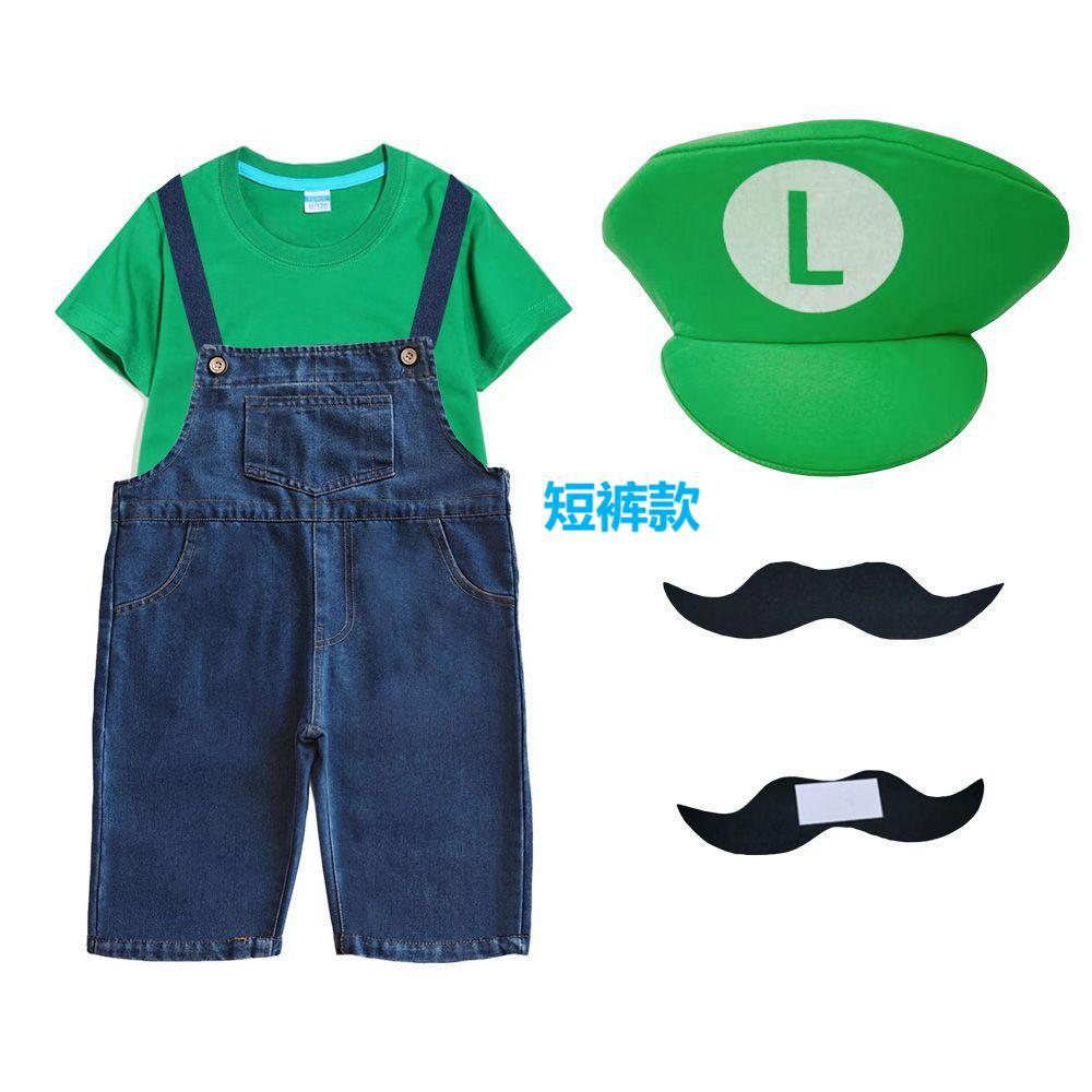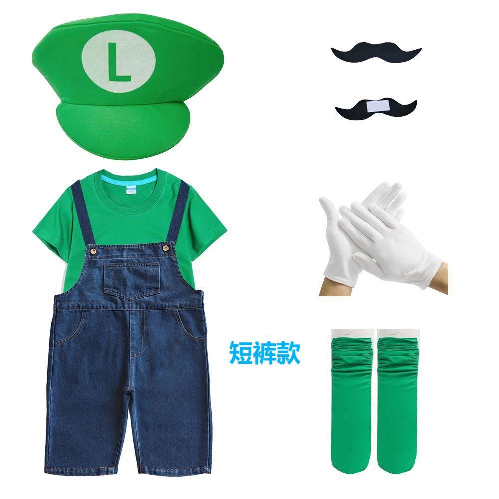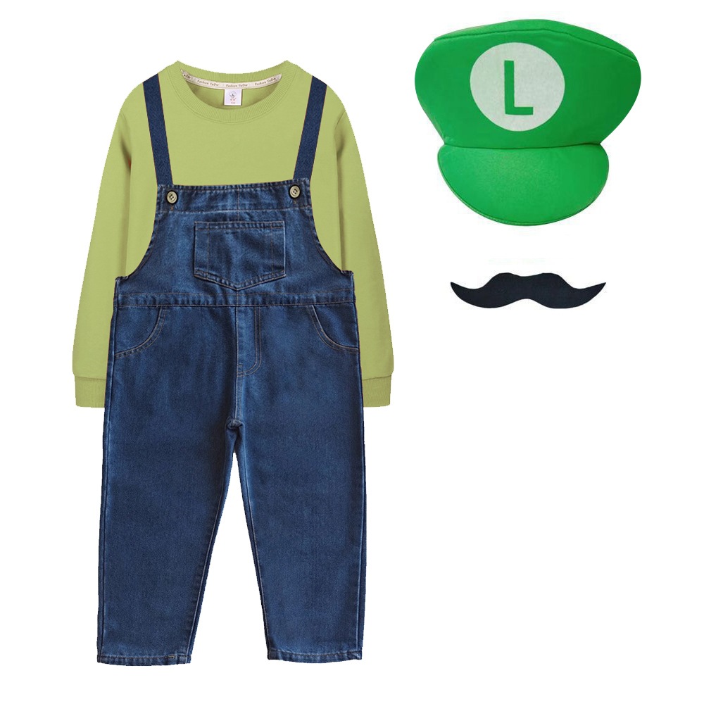 • 파란색 멜빵 바지 + 녹색 반팔 + 녹색 모자 + 수염 장갑 녹색 양말