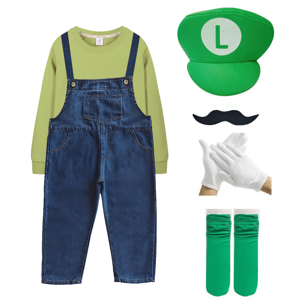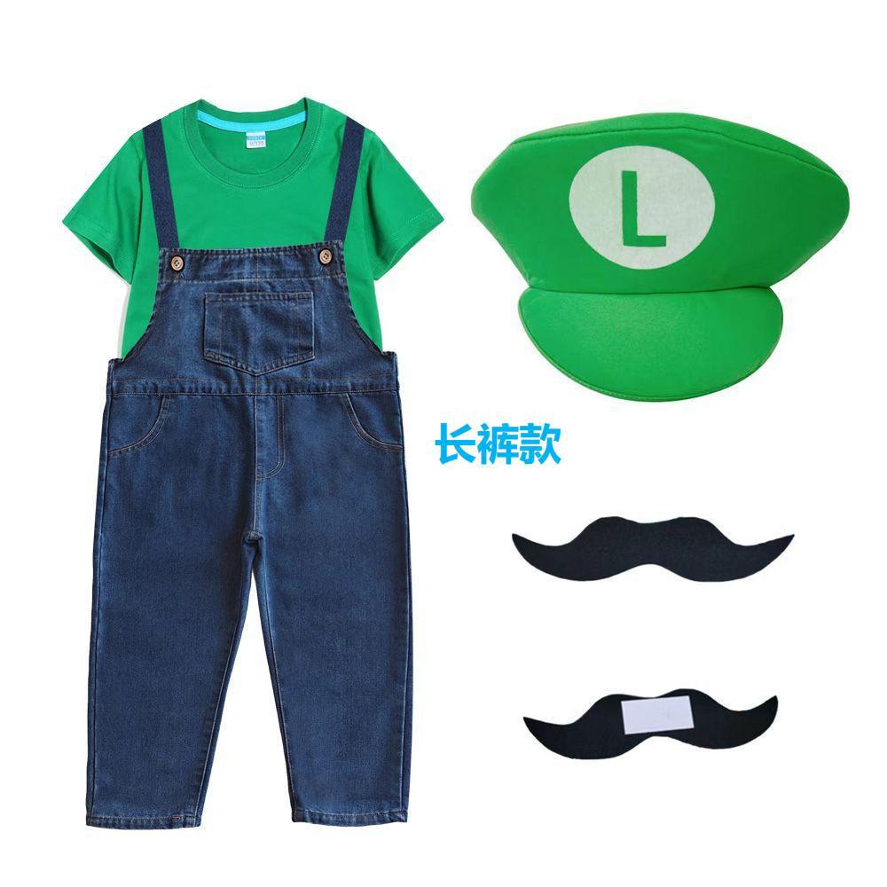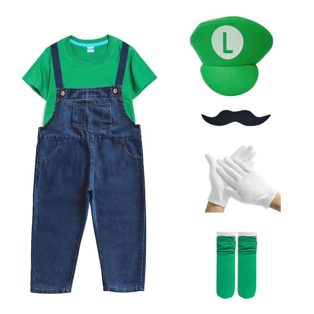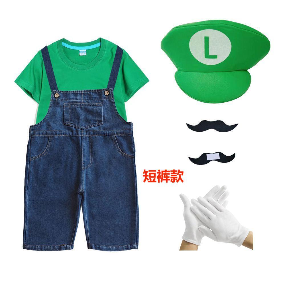 • 파란색 멜빵 바지 + 녹색 반팔 + 녹색 모자 + 수염 장갑 녹색 양말
