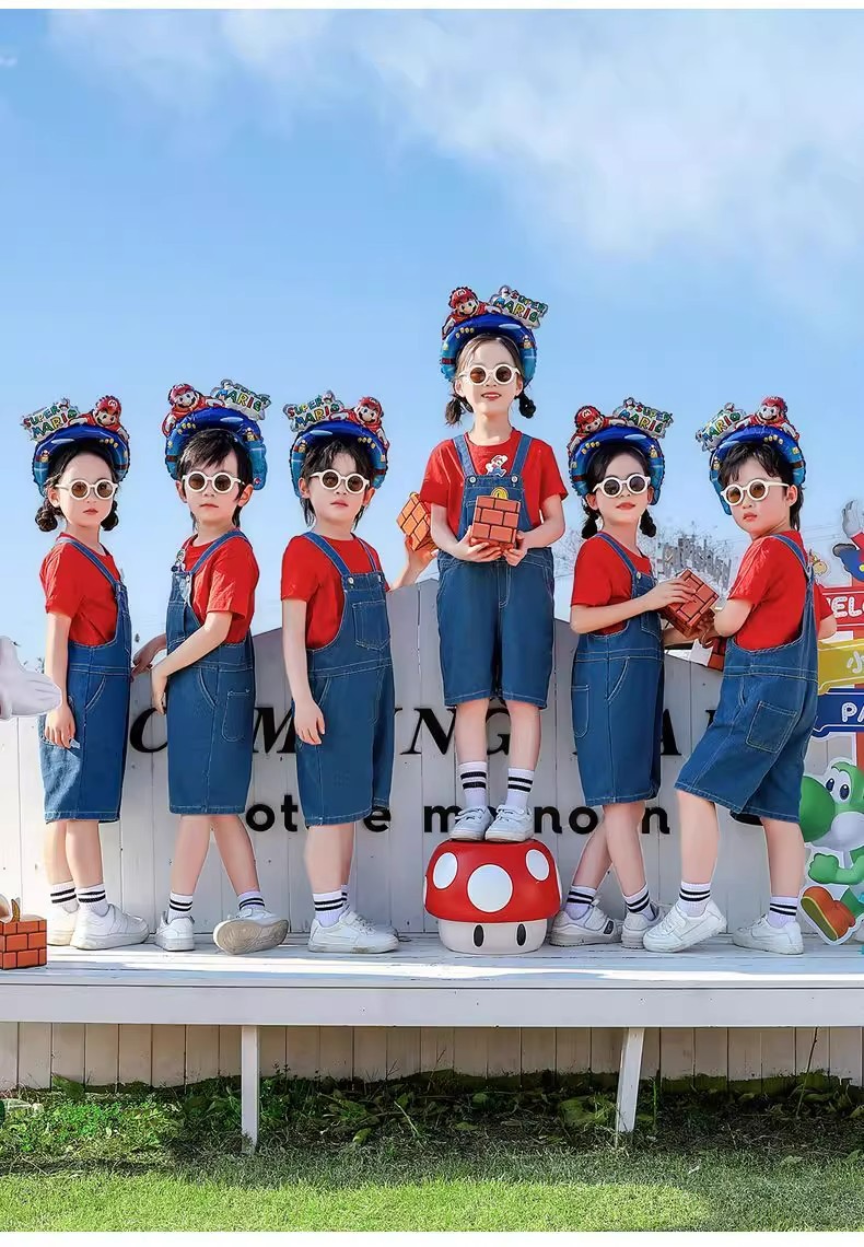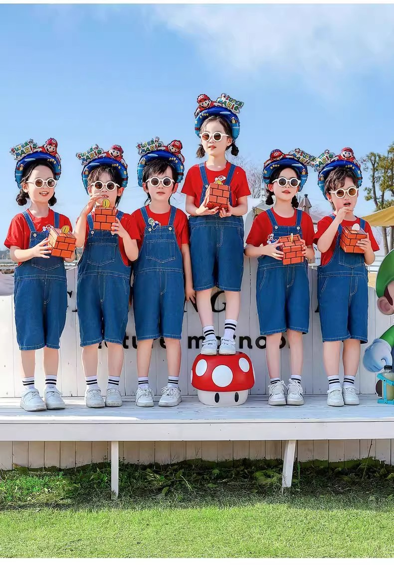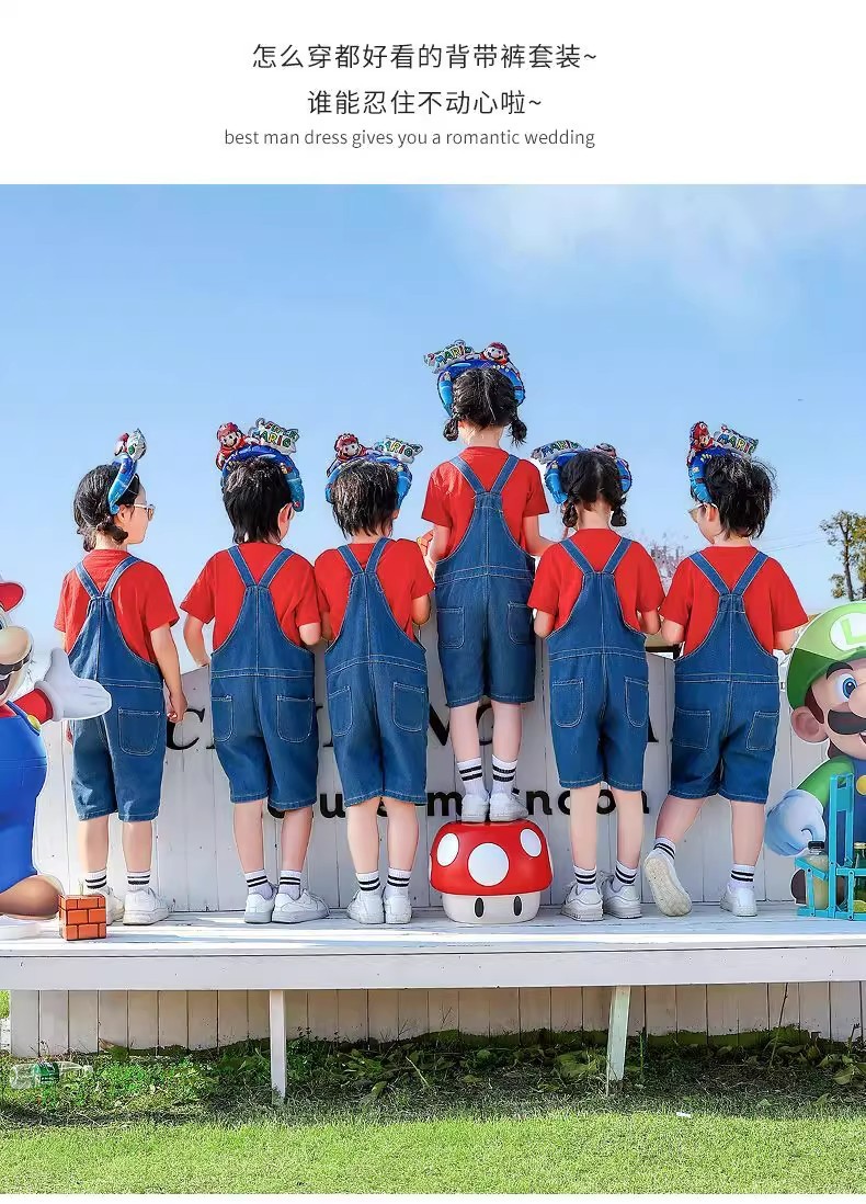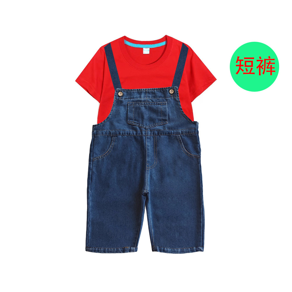 할로윈 마리 코스프레 의상 어린이날 공연 여름 면 반팔티 데님 멜빵바지 학급복 세트