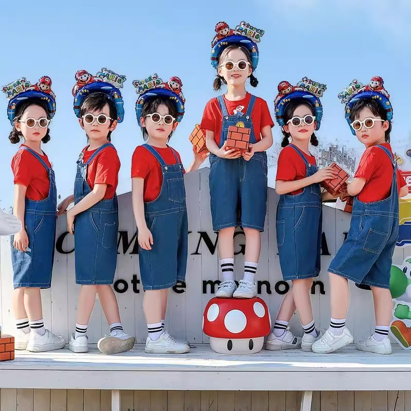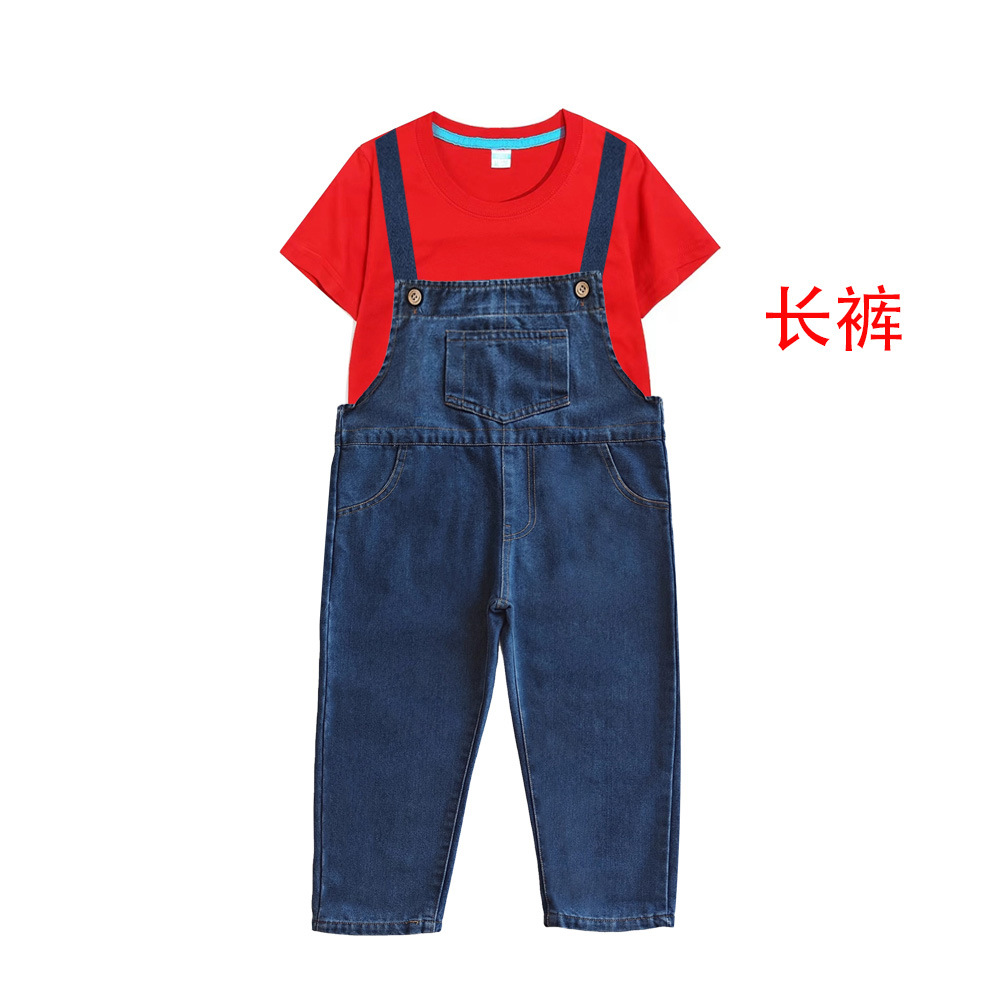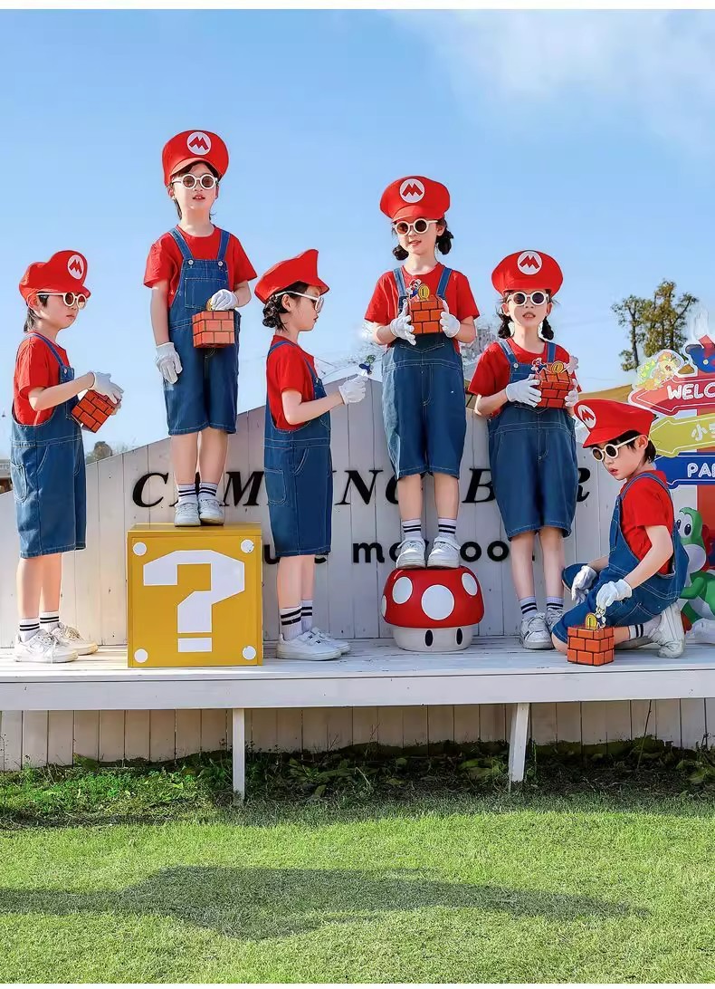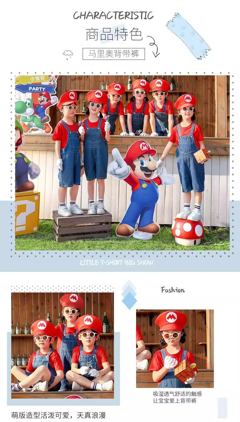 할로윈 마리 코스프레 의상 어린이날 공연 여름 면 반팔티 데님 멜빵바지 학급복 세트