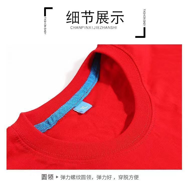• 블루 스트랩 반바지 빨간 짧은 소매