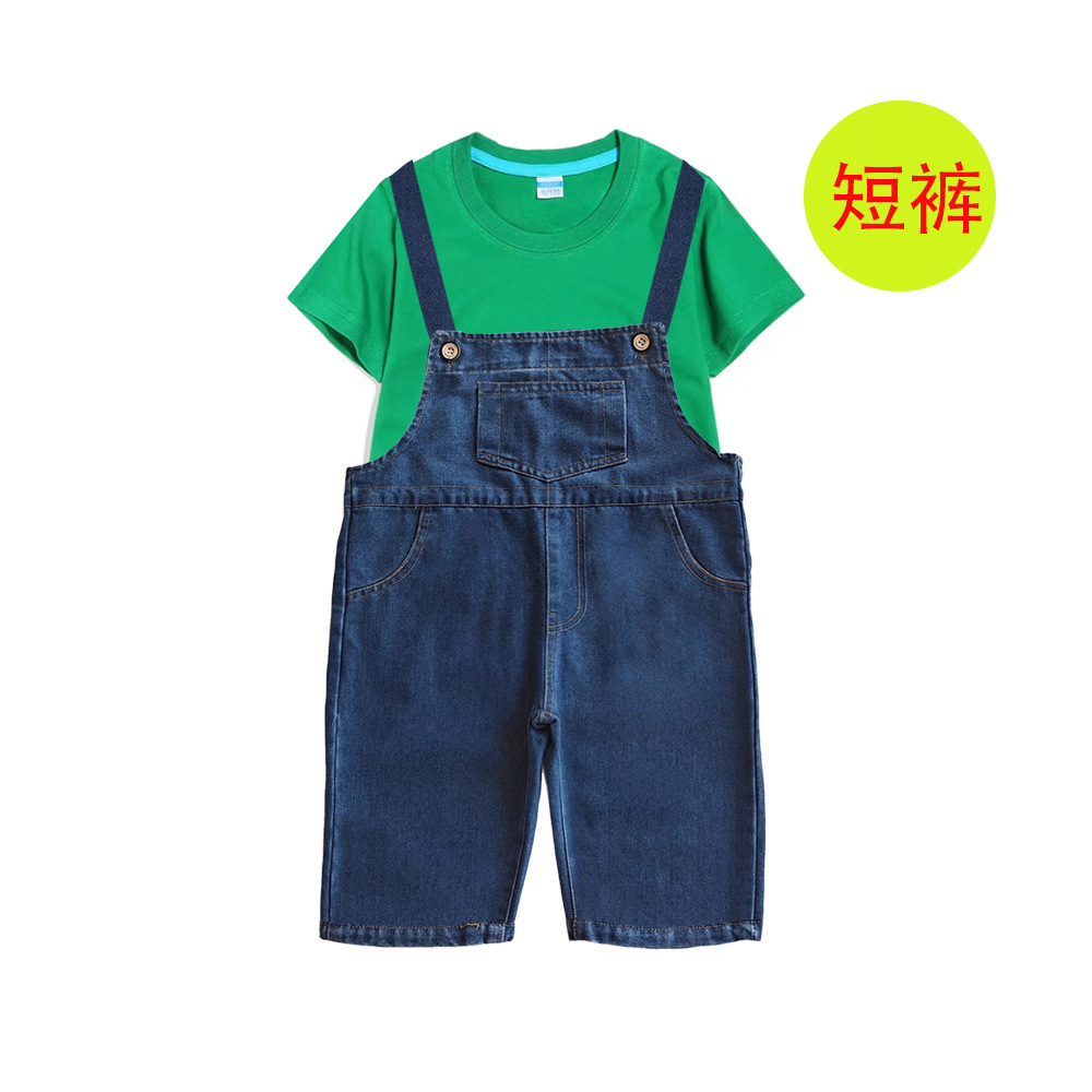 • 파란색 턱받이 반바지 + 녹색 반팔 + 녹색 모자 + 수염 장갑 + 녹색 양말