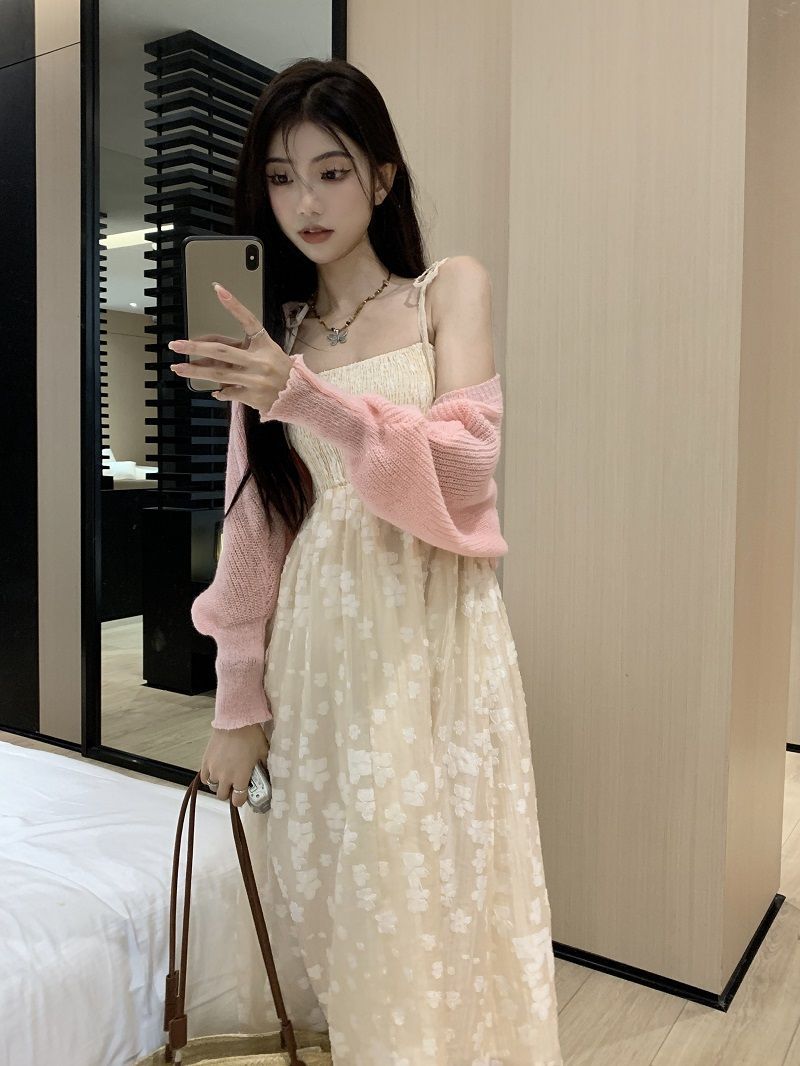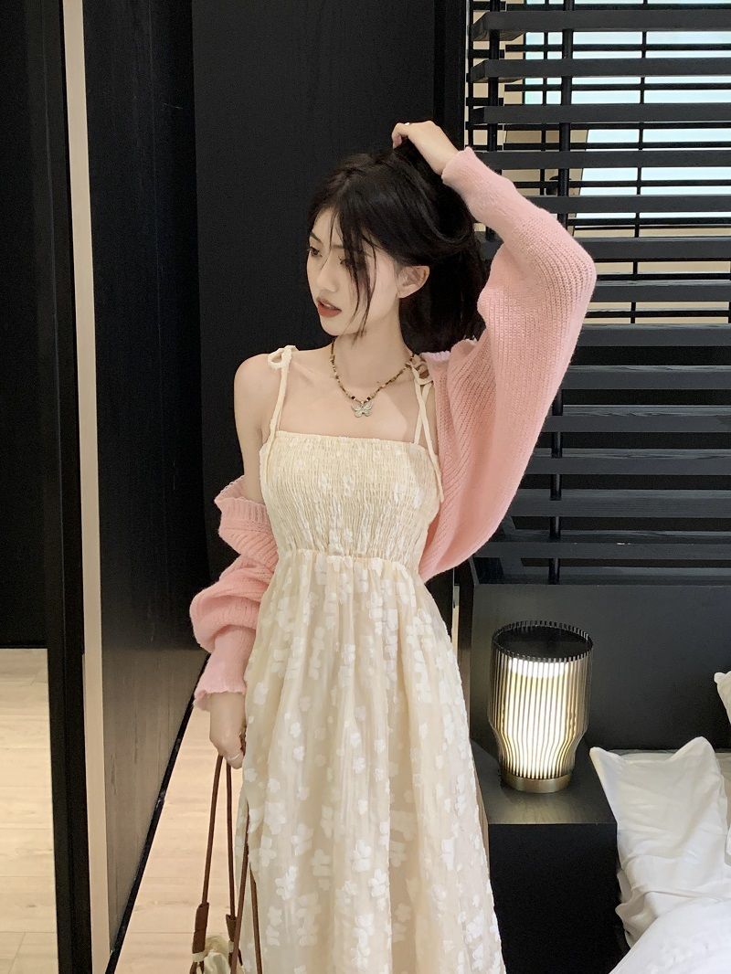 프랑스 달콤한 요정 원피스 수 놓은 Pleated Sling 원피스 2024 여름 새로운 슬림 핏 허리 긴 원피스스토어 가기