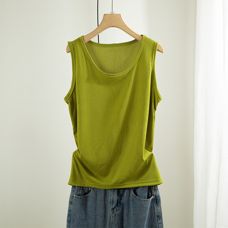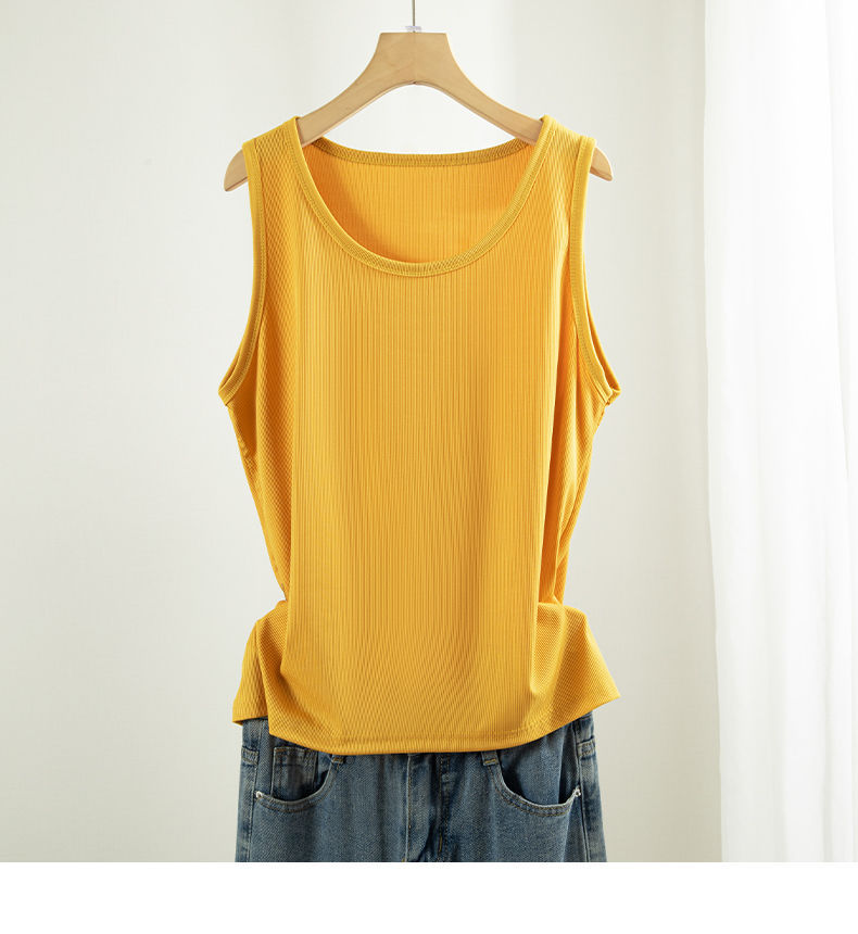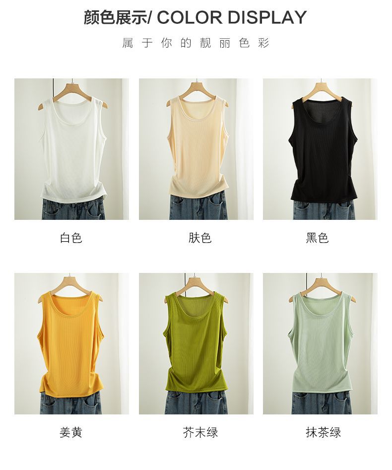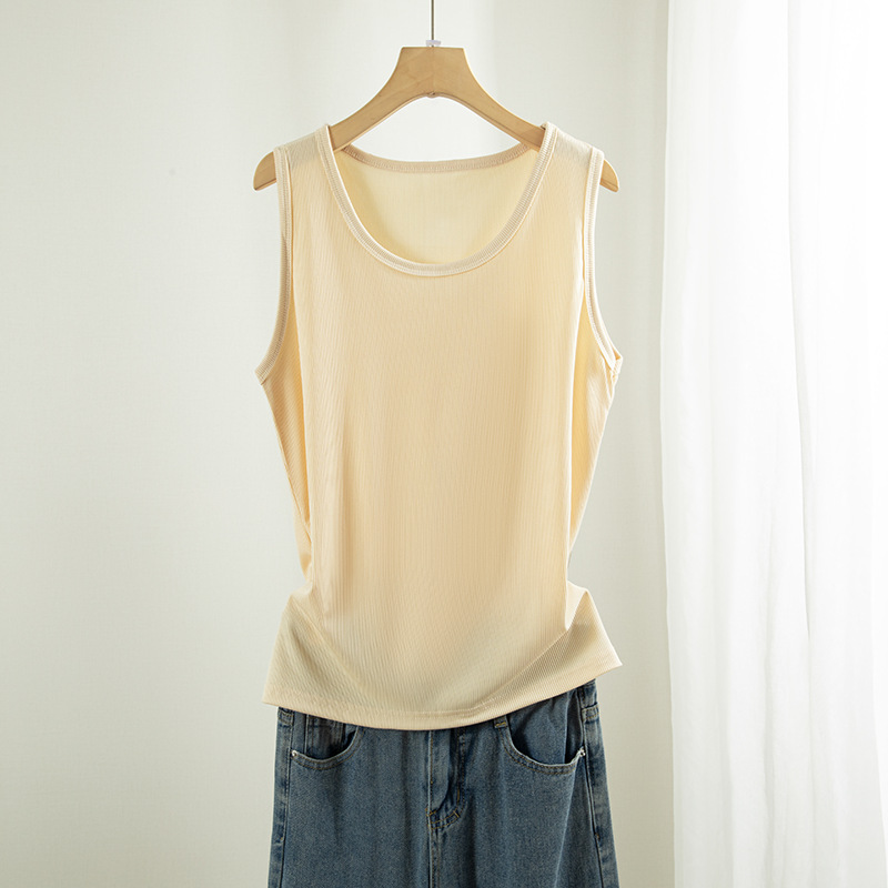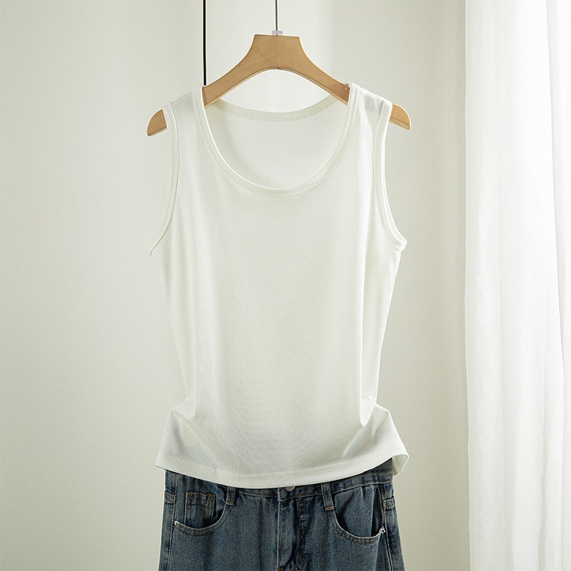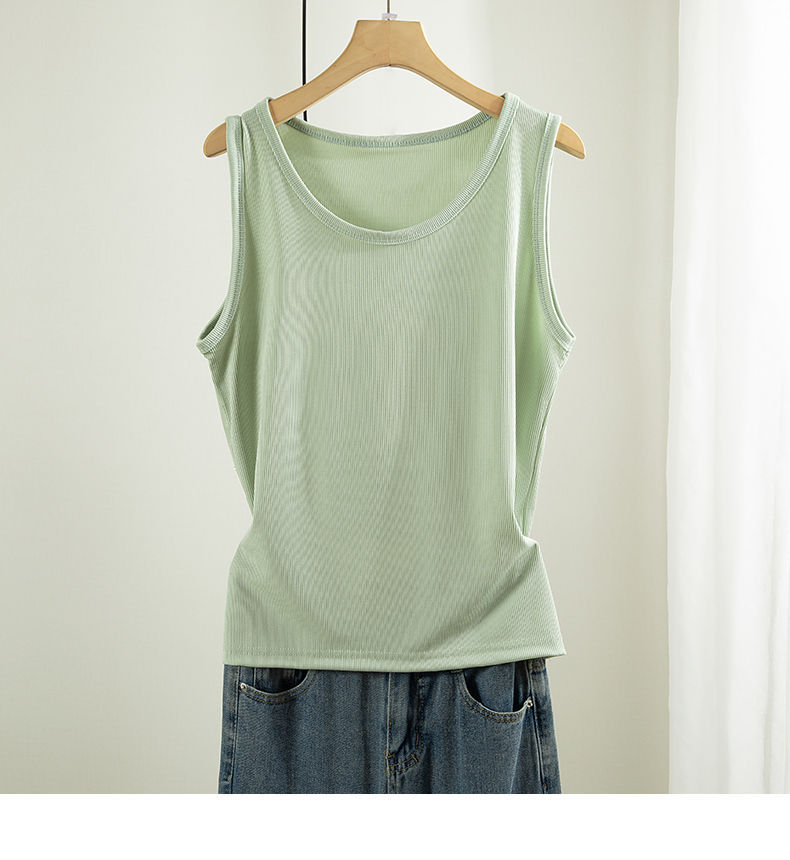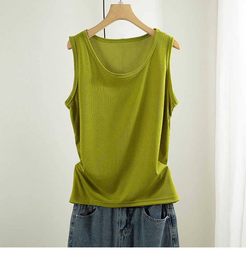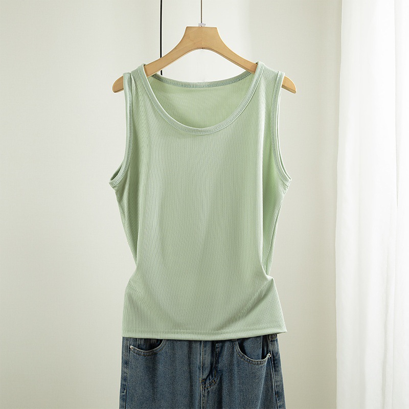 冰丝螺纹宽肩吊带背心女夏季外穿上衣薄款圆领纯色内搭针织打底衫