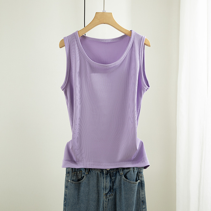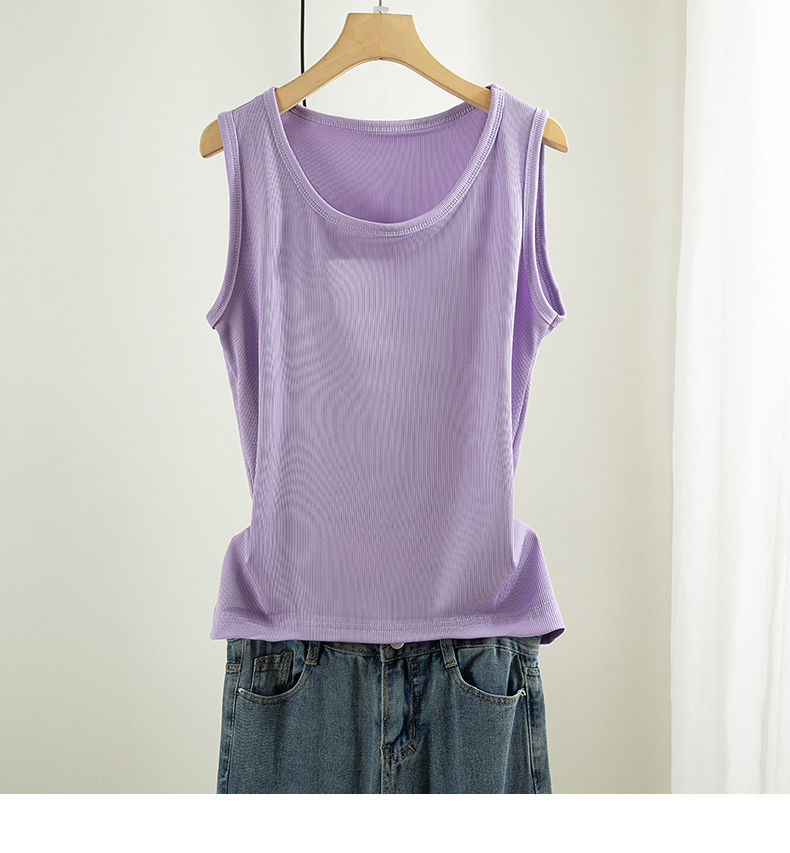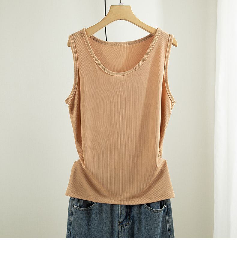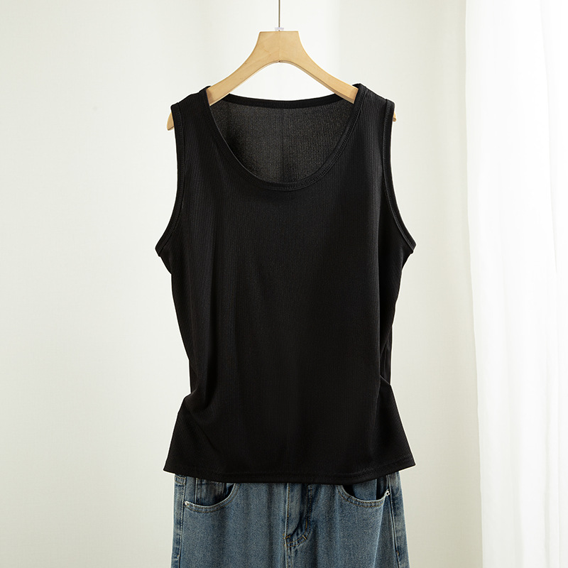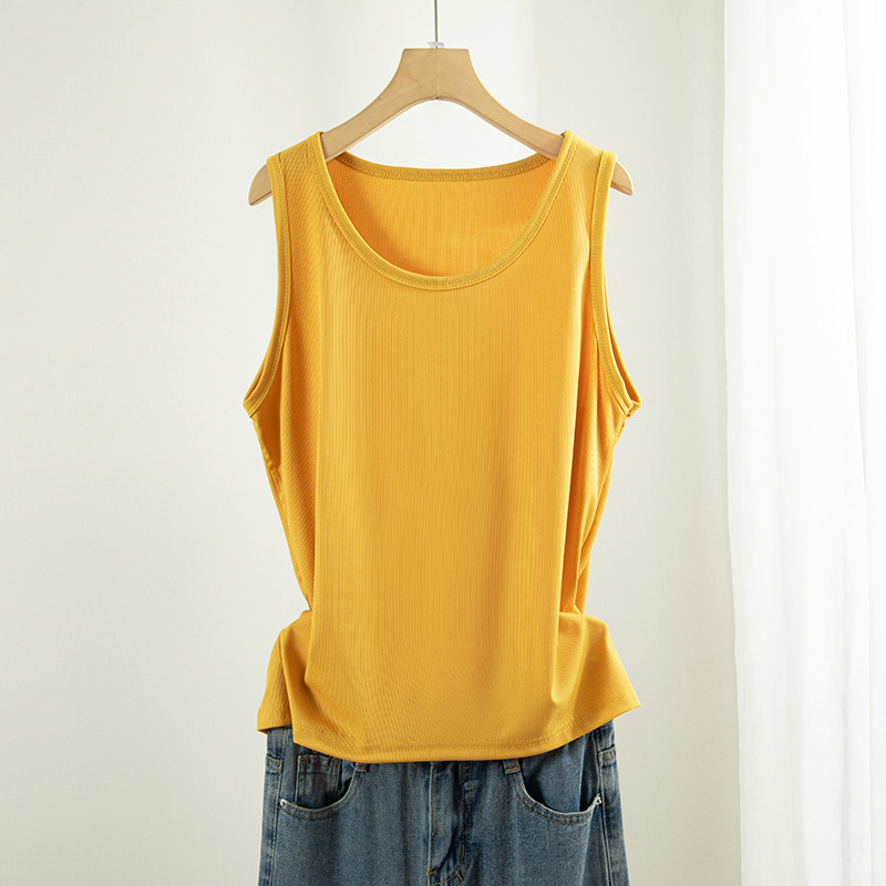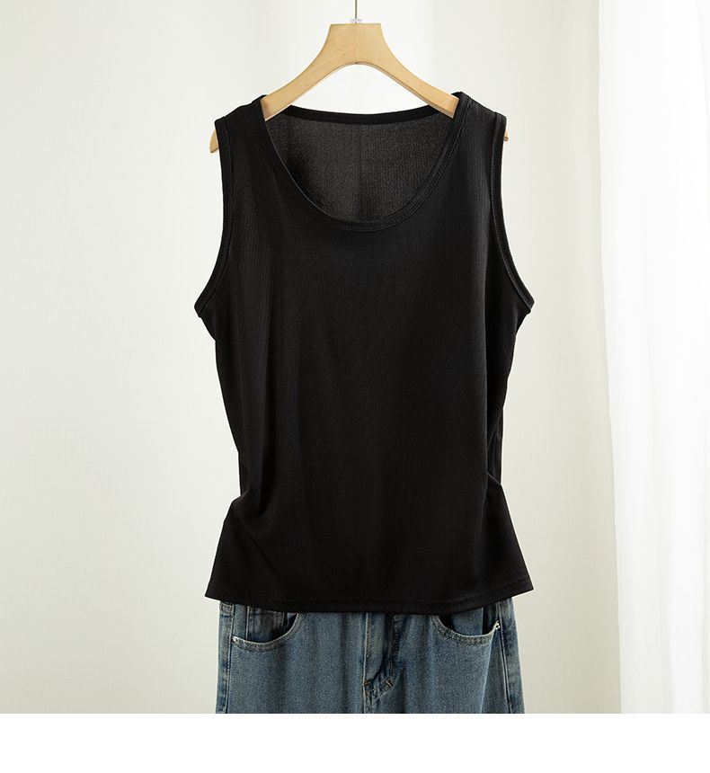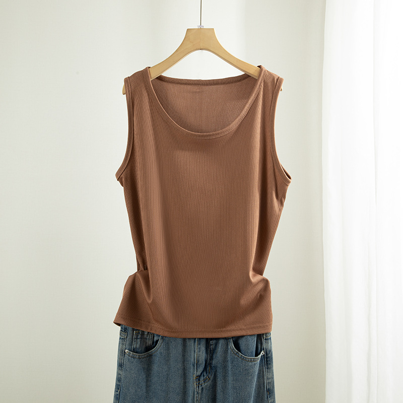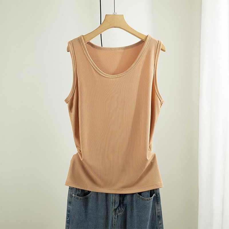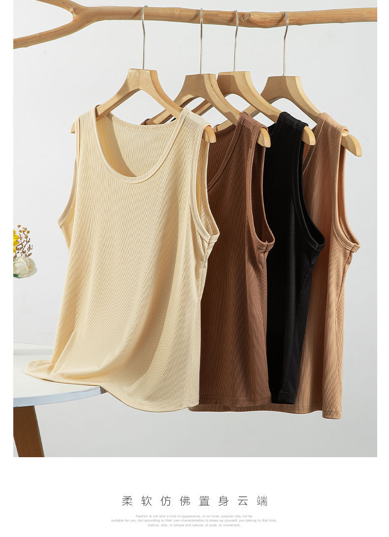 冰丝螺纹宽肩吊带背心女夏季外穿上衣薄款圆领纯色内搭针织打底衫