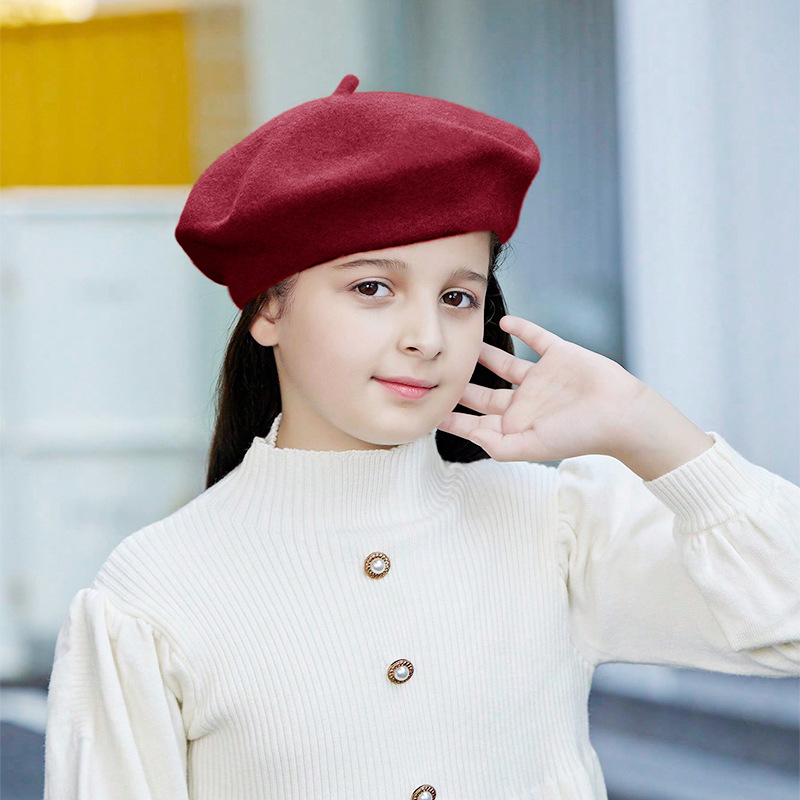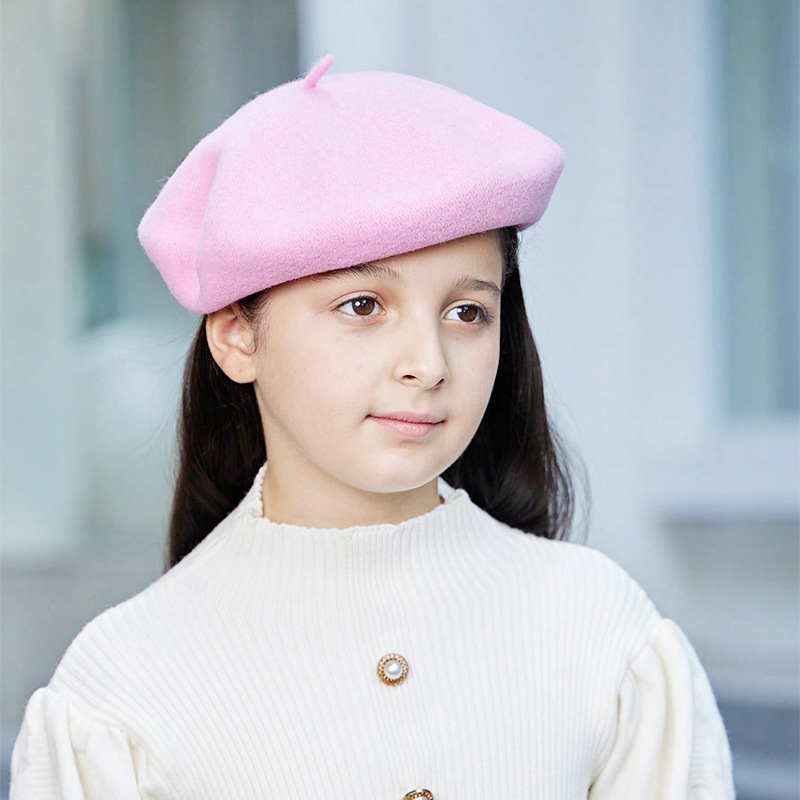 2025년 신상 가을 겨울 단색 어린이 베레모 아마존 울 다용도 영국 스타일 따뜻한 화가 모자 도매스토어 가기