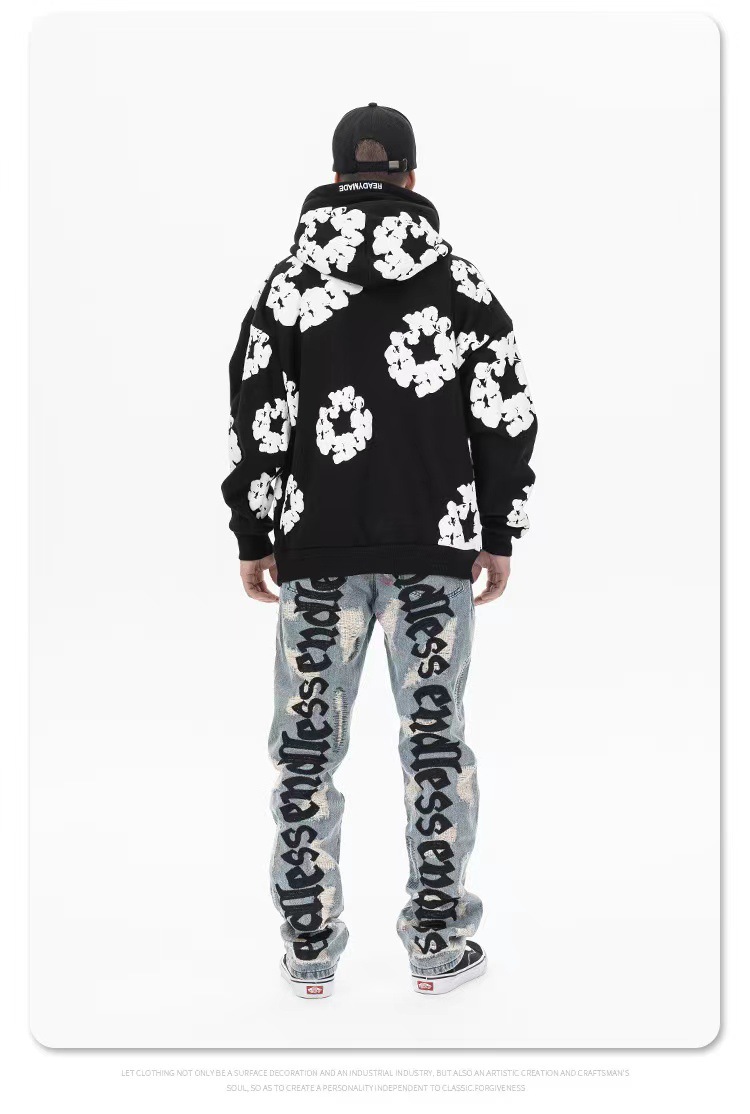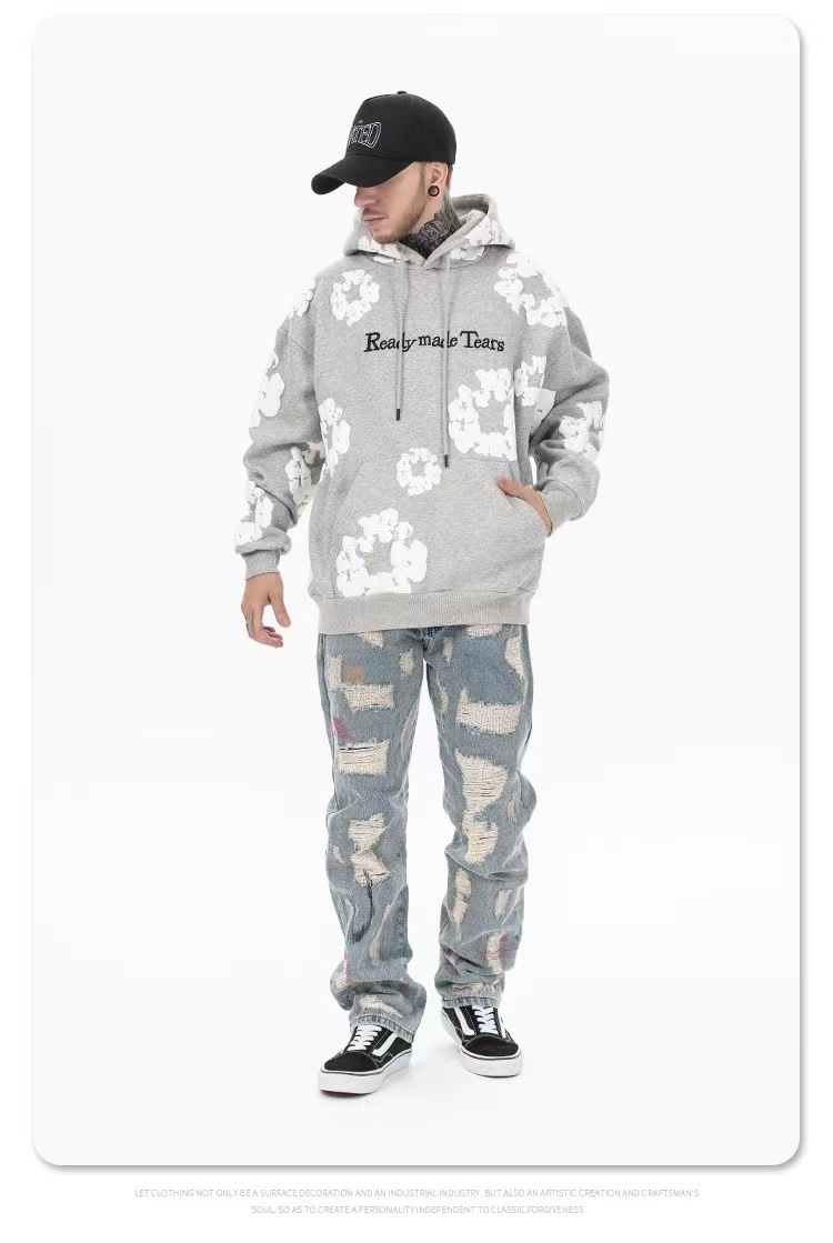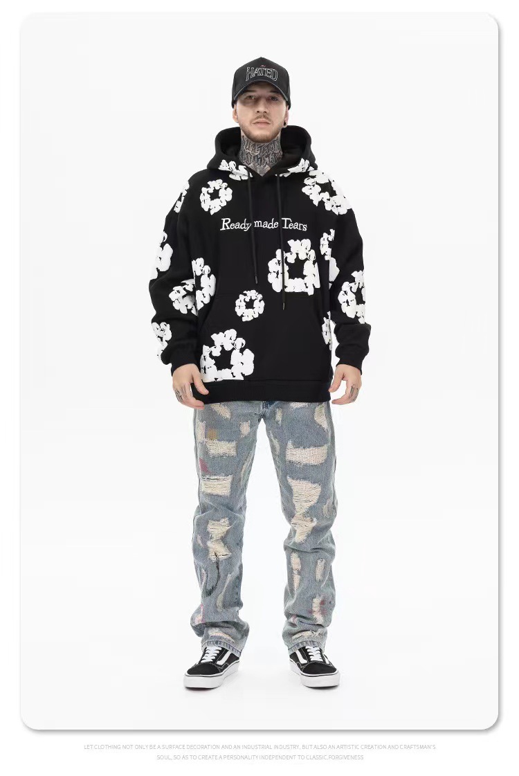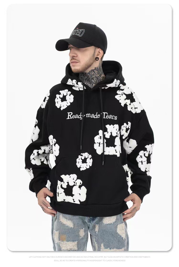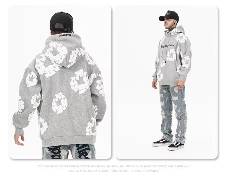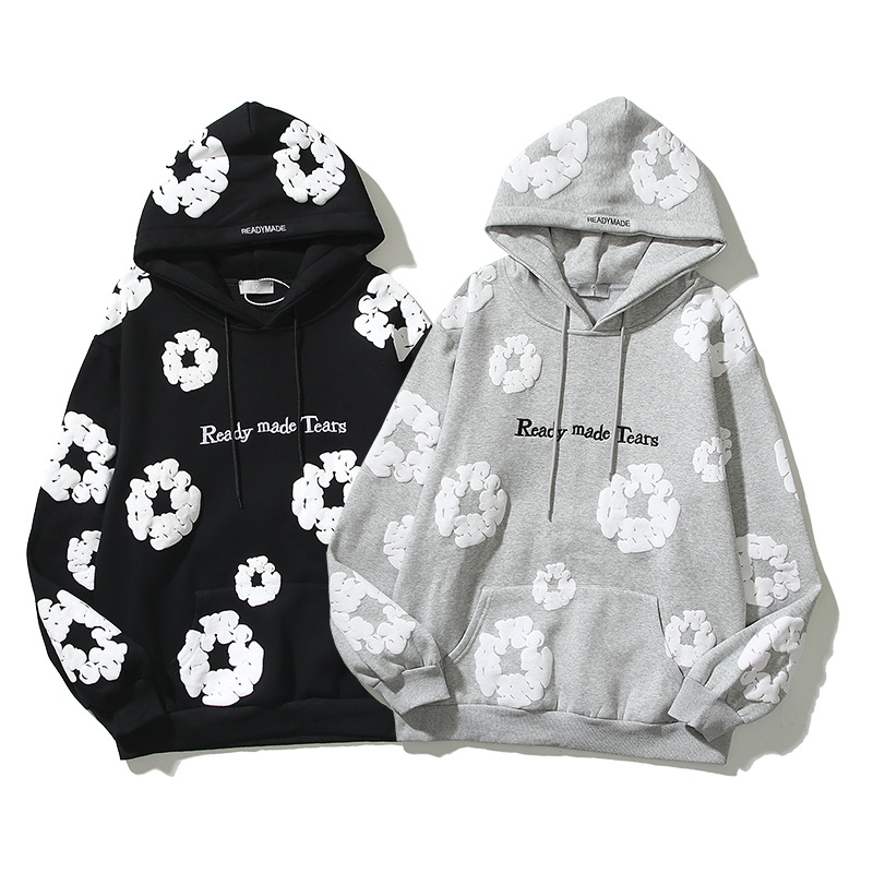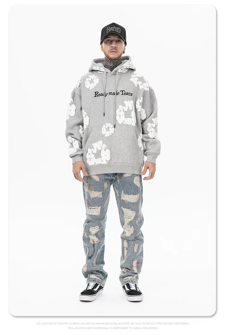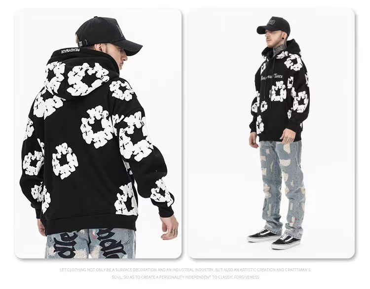국경을 넘나 드는 순수한면 코트 빈티지 입체 폼 카톡 인쇄 그래피티 남성과 여성의 자수 후드 스웨터 조수스토어 가기