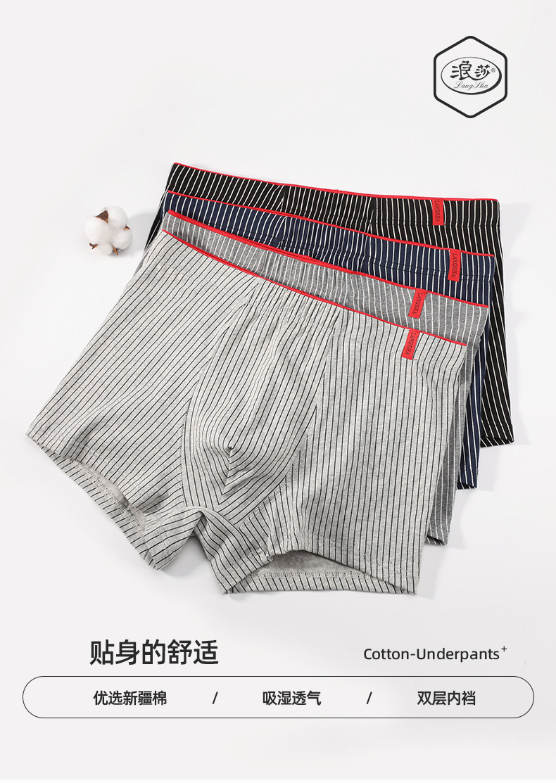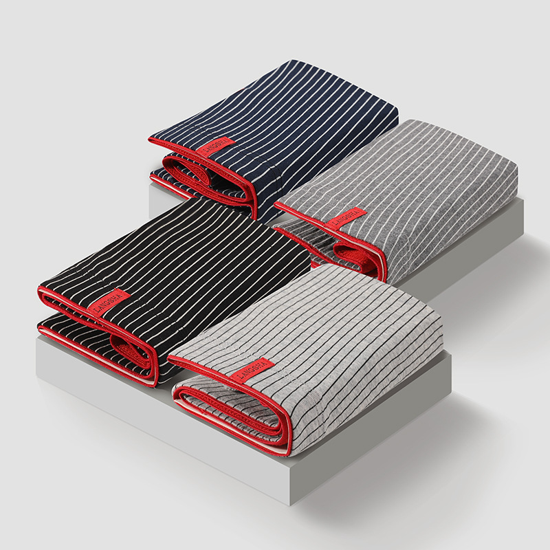 4 팩 Langsha 남성 속옷 퓨어 코튼 박스 패션 스트라이프 박테리아 정적 하단 신장 코튼 탄성 복서