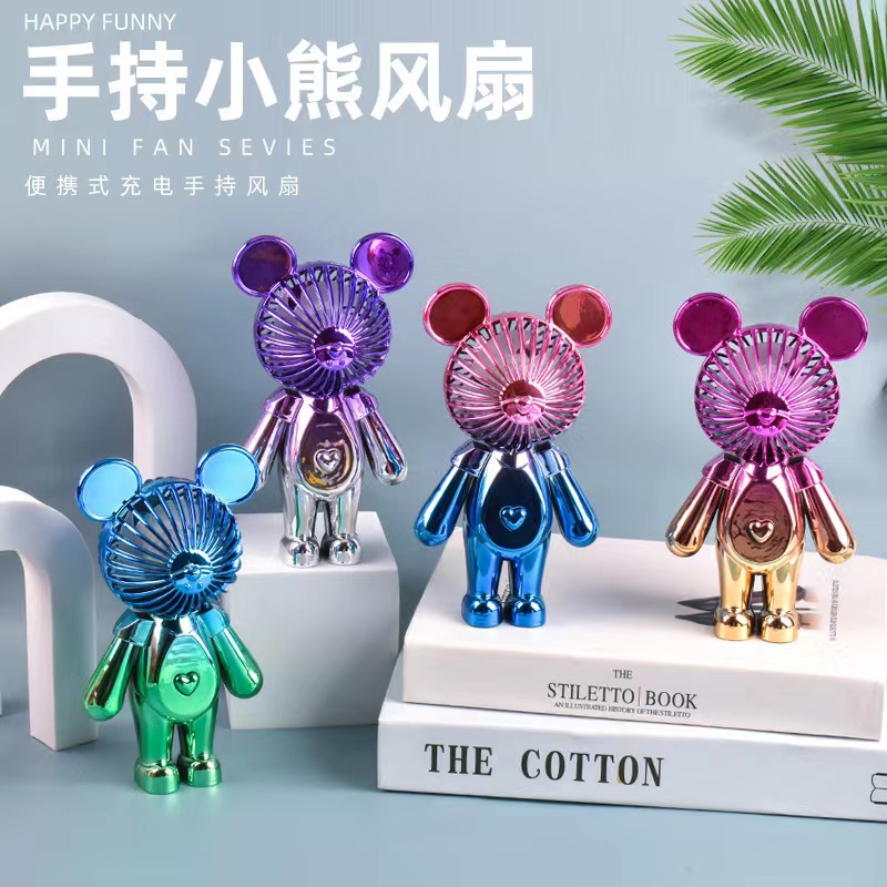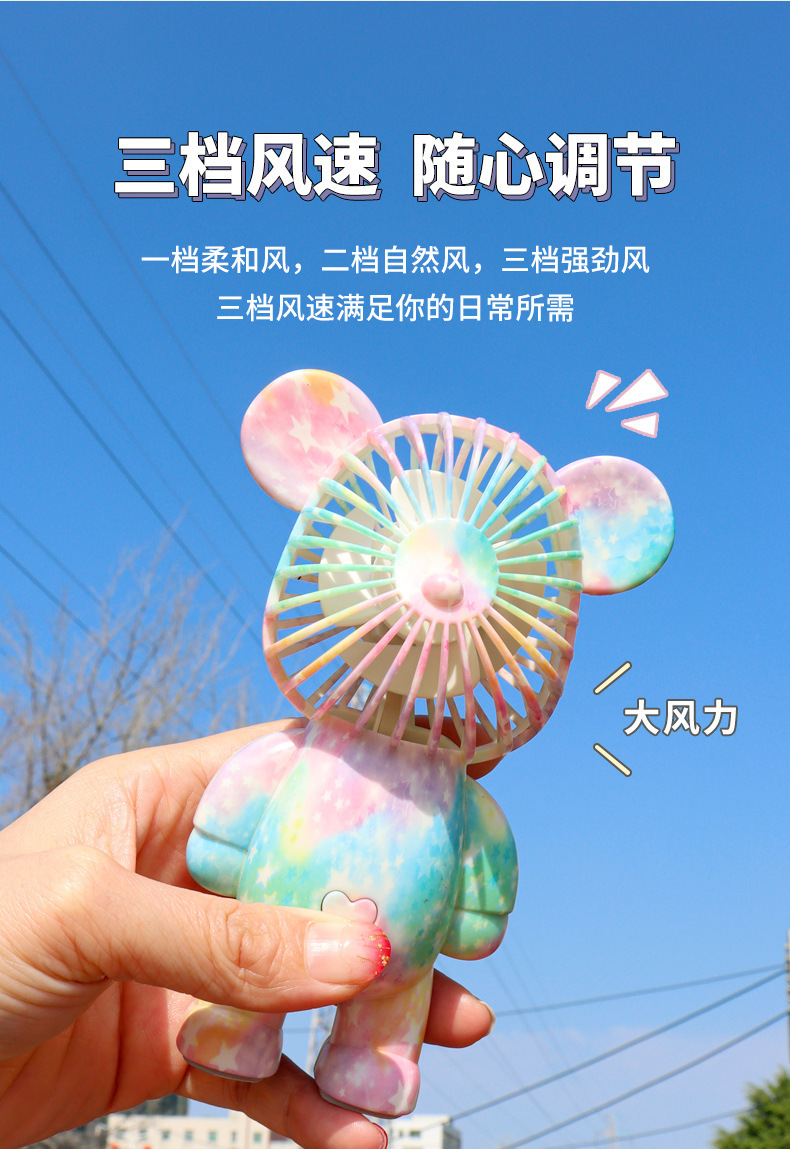 여름 만화 작은 전기 팬 폭력적인 곰 팬 휴대용 컬러 낙서 충전 휴대용 작은 팬 미니스토어 가기
