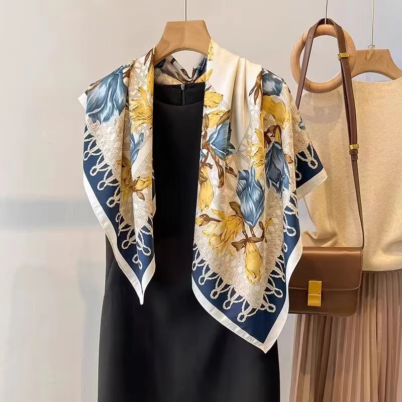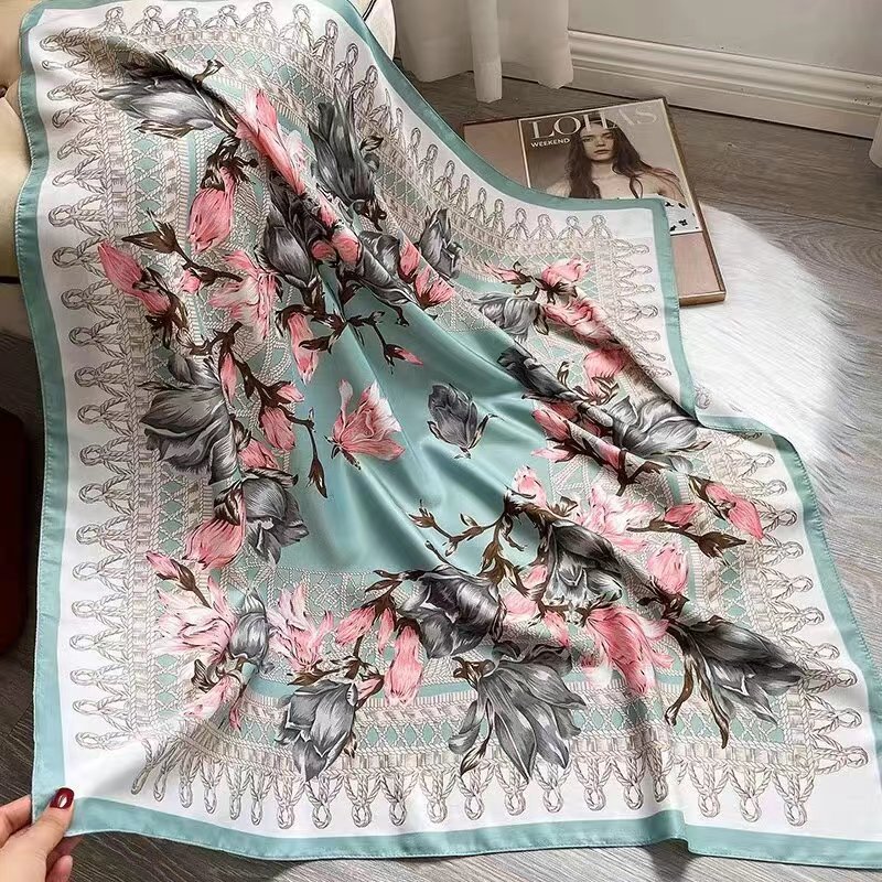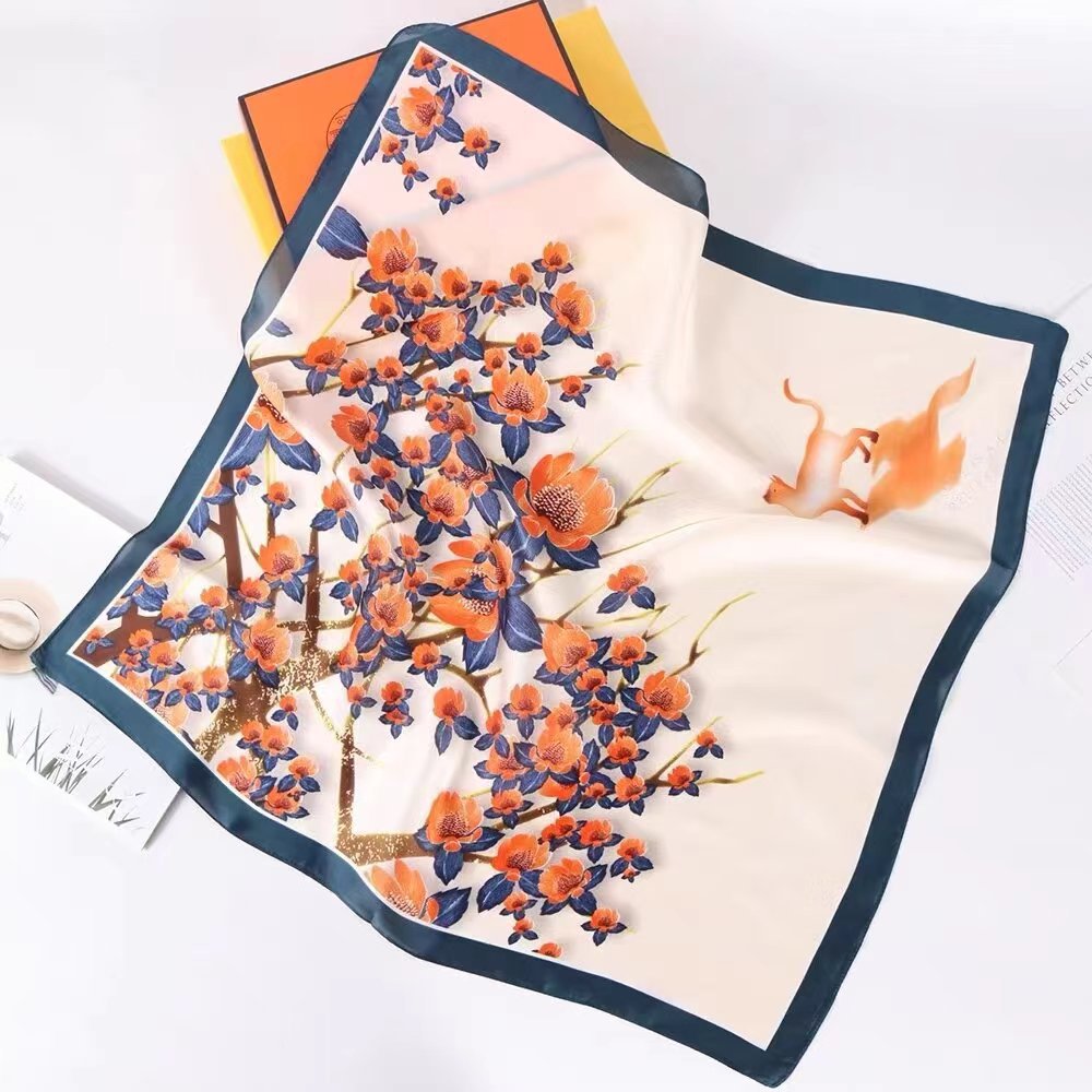 작은 실크 스카프 봄과 가을 인쇄 새로운 모조 실크 스퀘어 스카프 여성 패션 스카프 높은 감각 작은 스카프 도매 조커스토어 가기