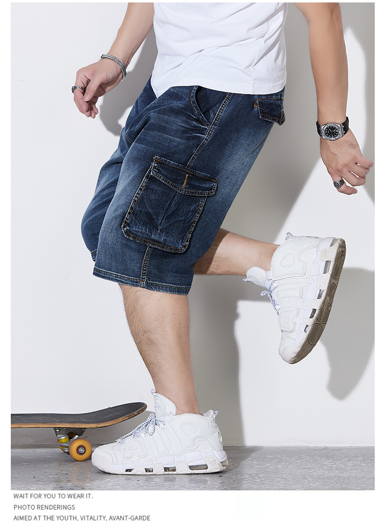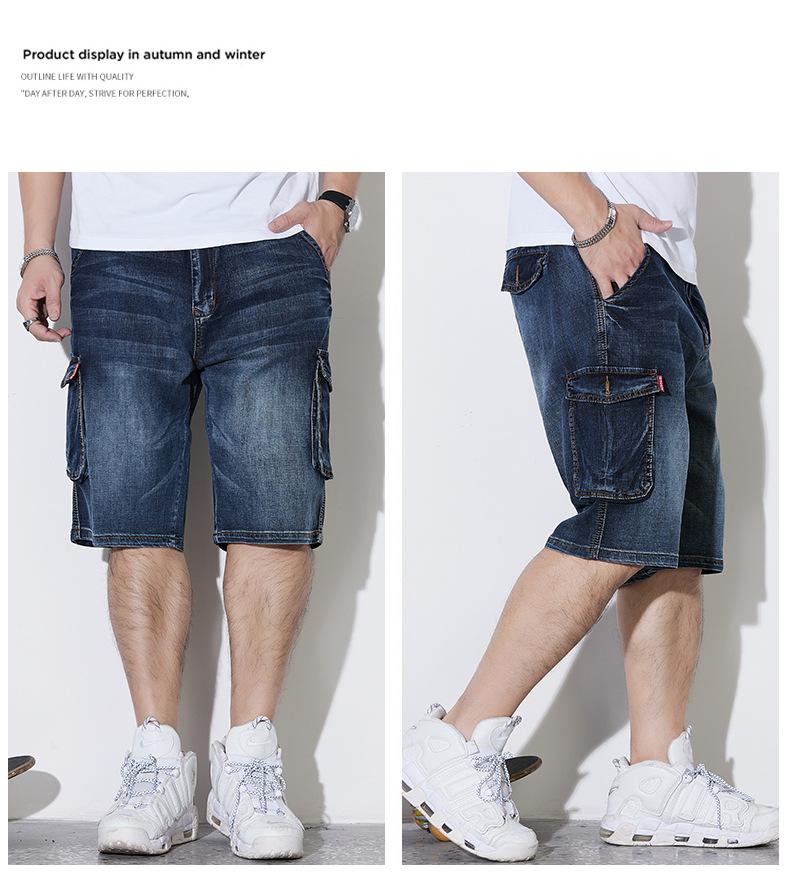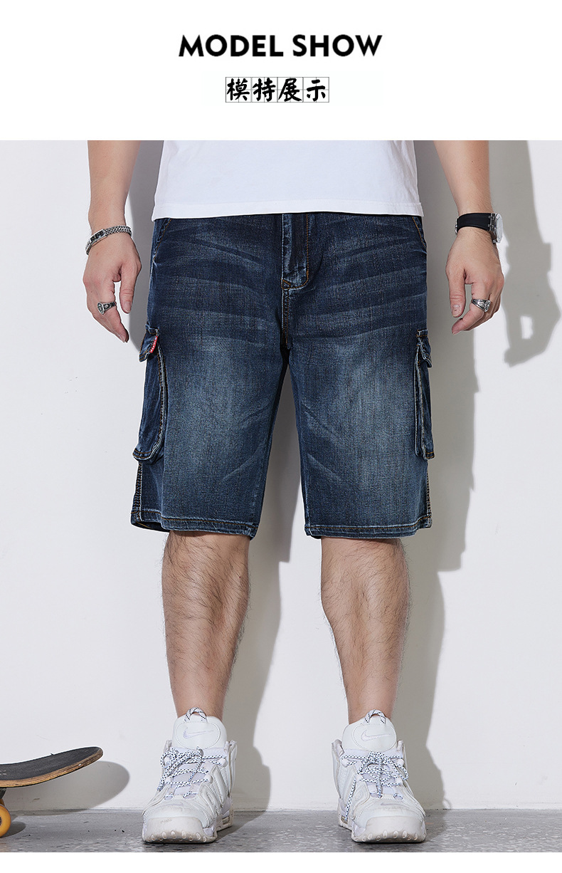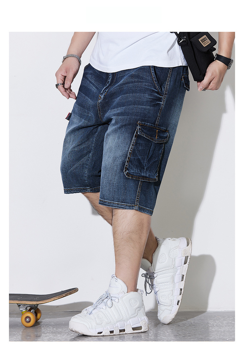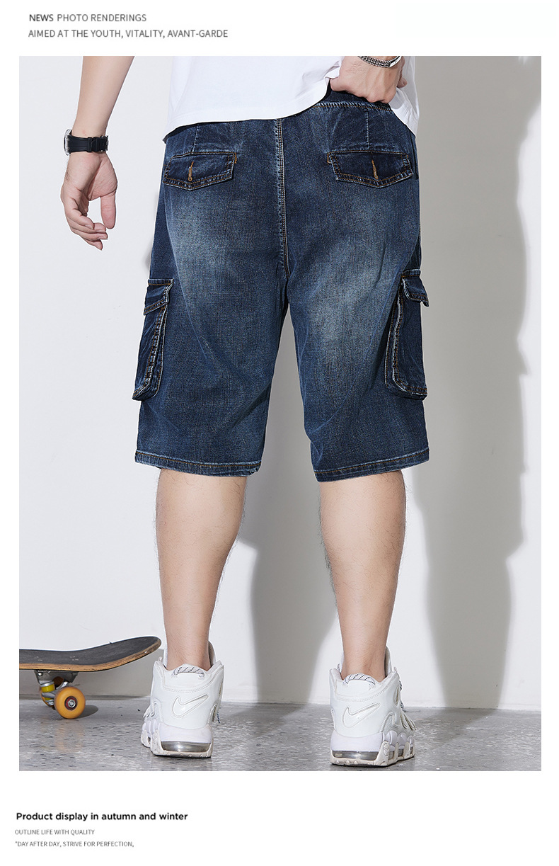작은 뚱뚱한 암소 여름 남자 데님 반바지 느슨한 높은 탄성 편안한 중간 허리 데님 바지스토어 가기