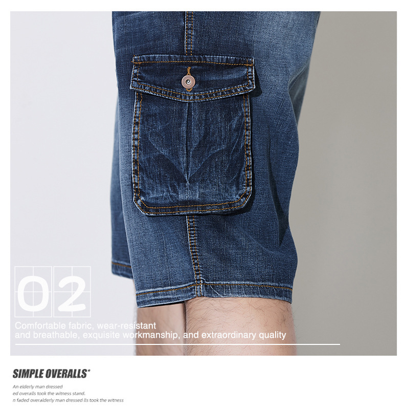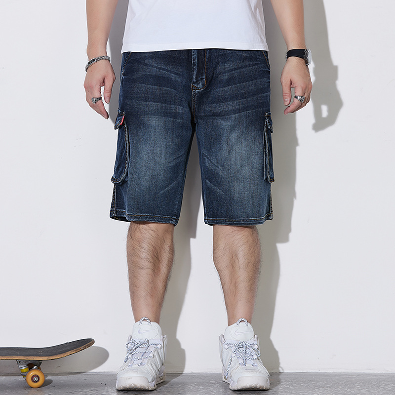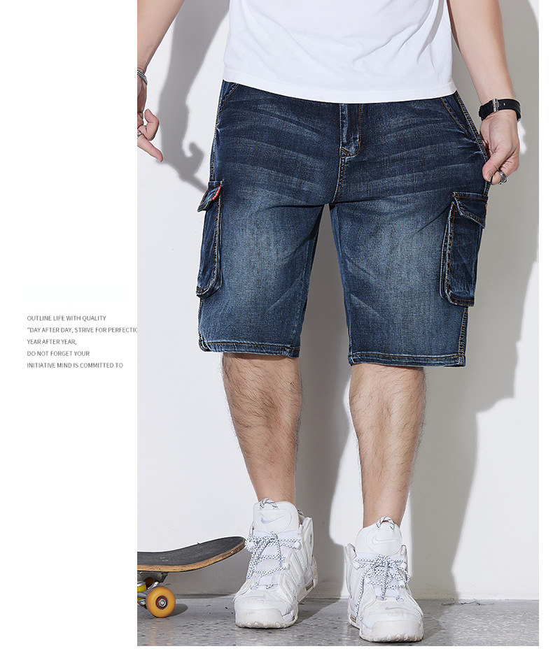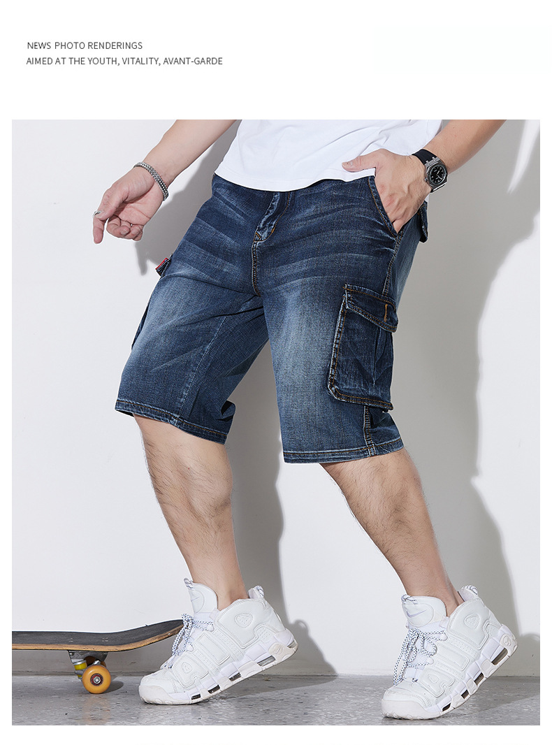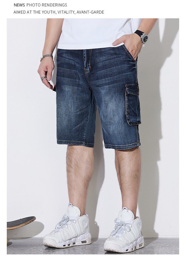 작은 뚱뚱한 암소 여름 남자 데님 반바지 느슨한 높은 탄성 편안한 중간 허리 데님 바지