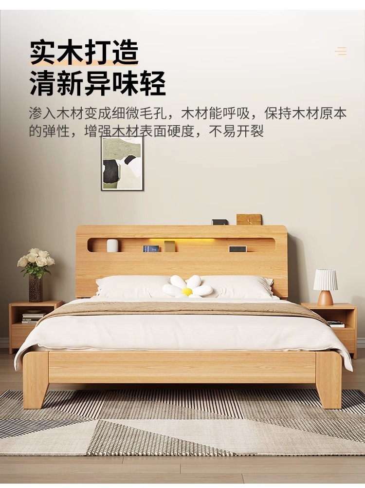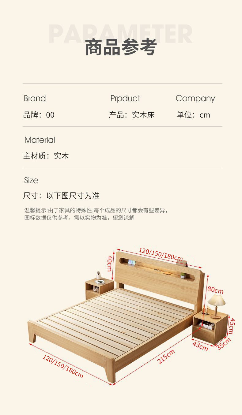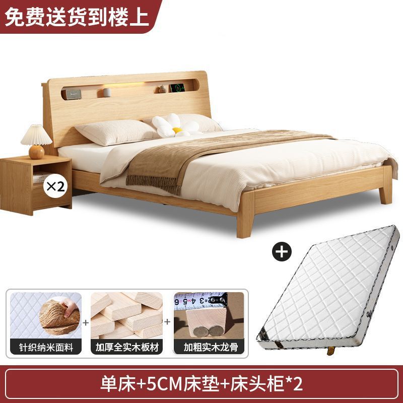 단단한 나무 침대 세대 간단한 1.5 m 가구 더블 1.8 m 침대 지금 큰 침대 임대 방 경제적 인 1.2 싱글 침대스토어 가기