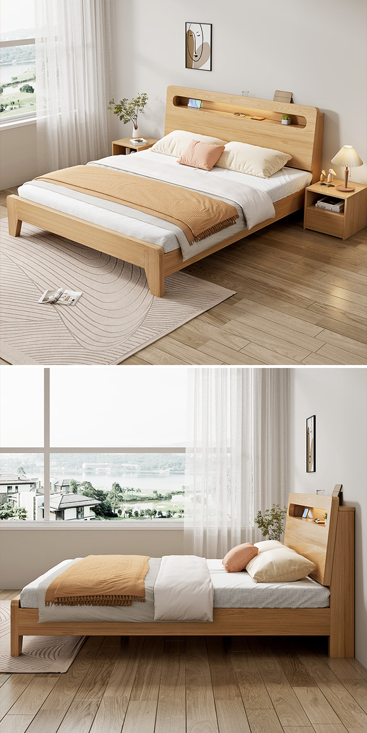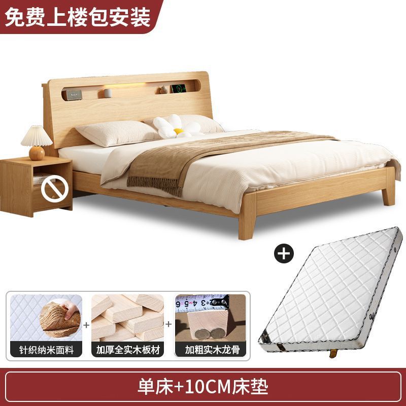 • 단단한 나무 침대 10cm 매트리스 [가구 포함]]