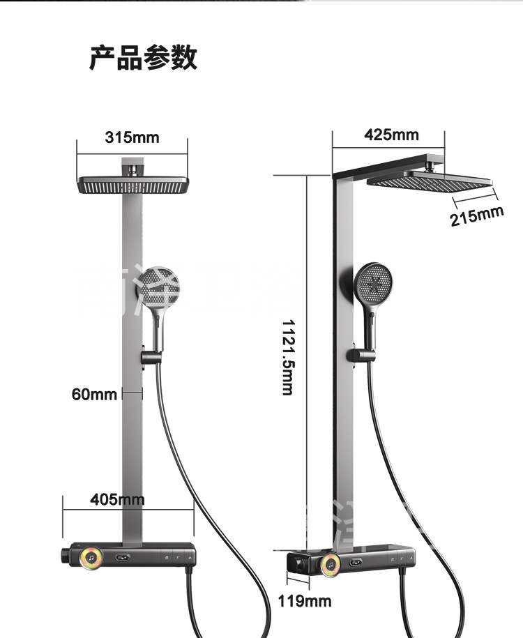 스마트 음악 샤워 세트 총 회색 크리미 화이트 비 샤워 샤워 세트 디지털 디스플레이 샤워 세트 홈