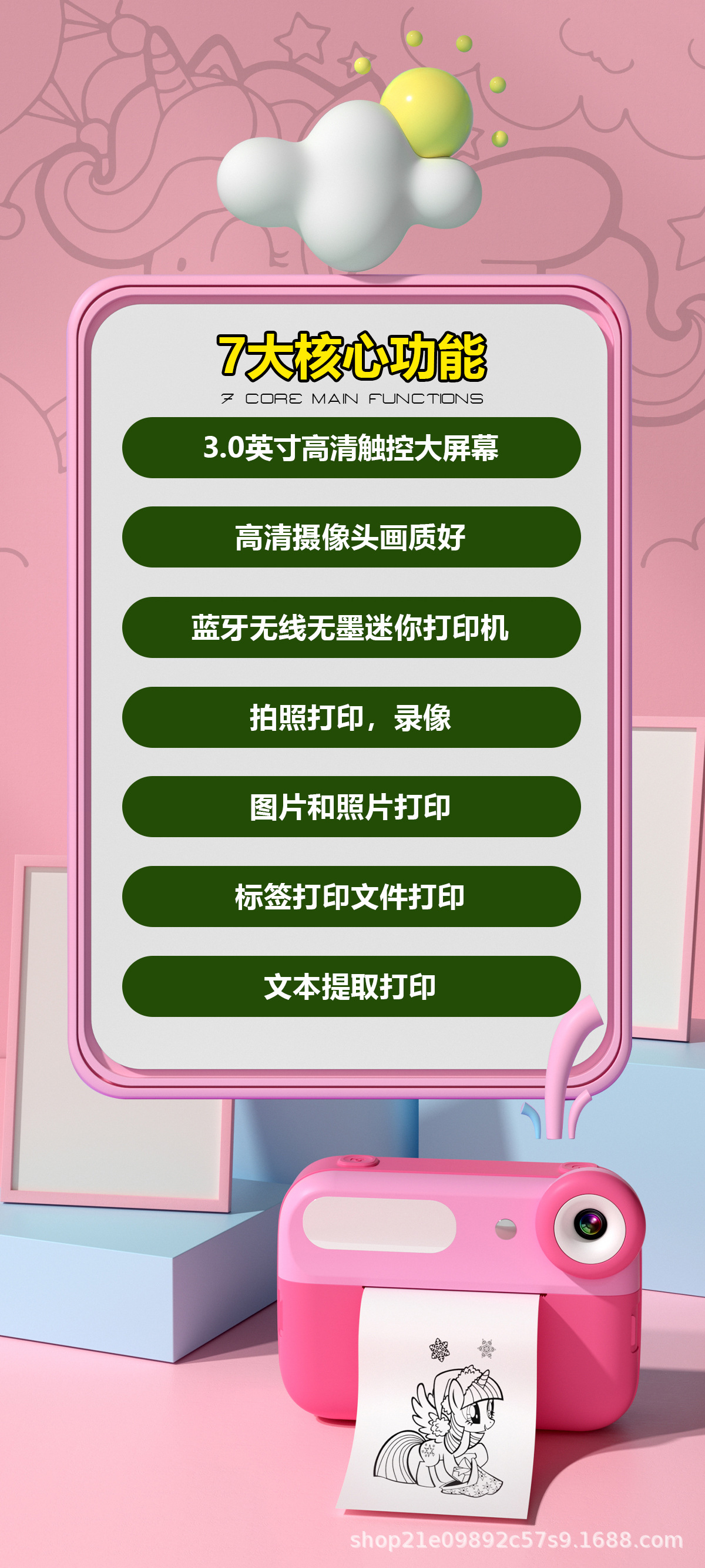 • Q7 어린이 인쇄 카메라 핑크