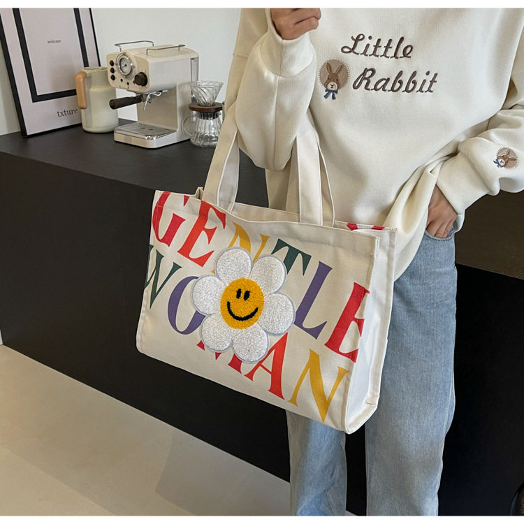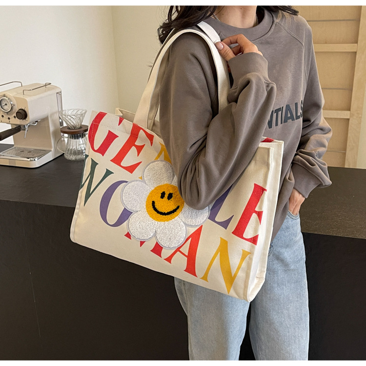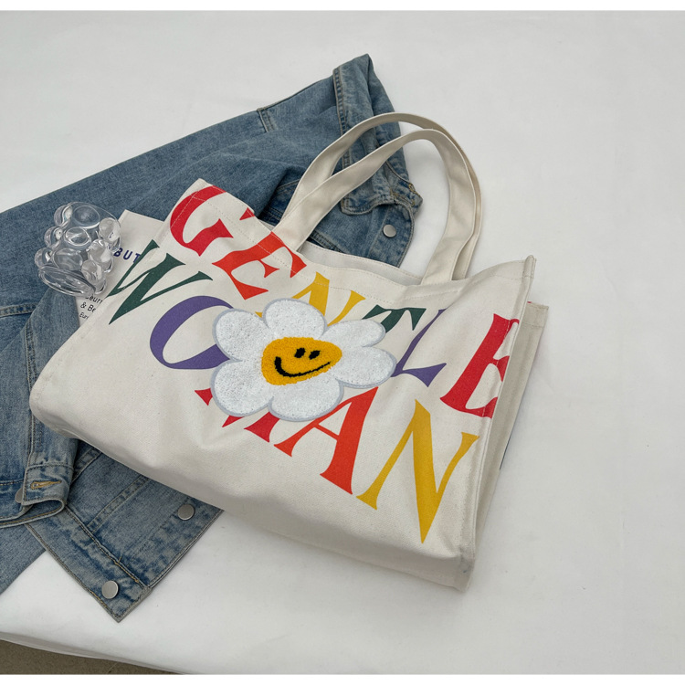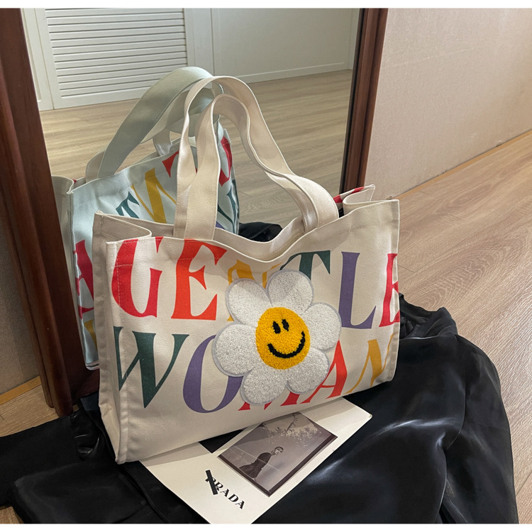 양면 인쇄 핸드백 여성의 대용량 유행 캔버스 토트 백 새로운 스타일 태국 인터넷 축하 GW 편지 여성용 가방스토어 가기