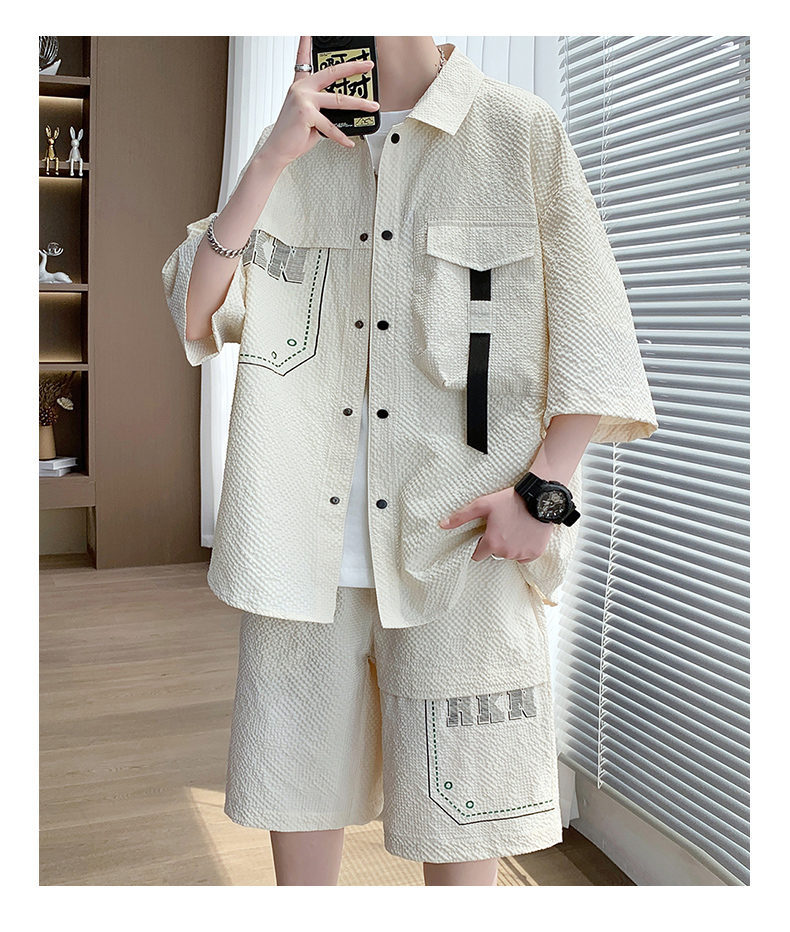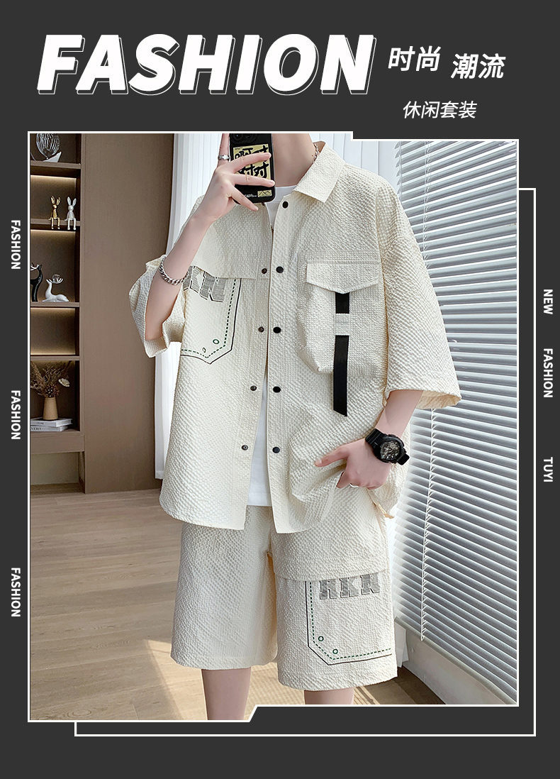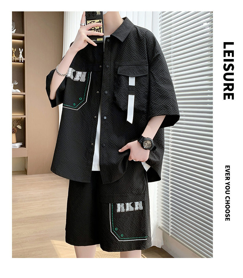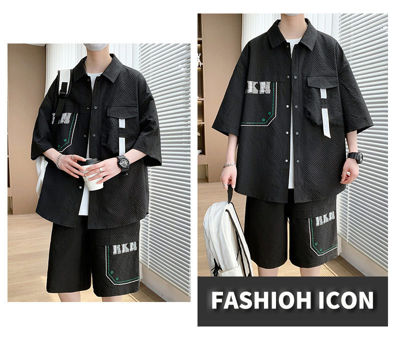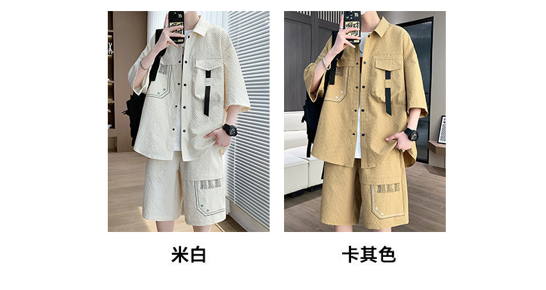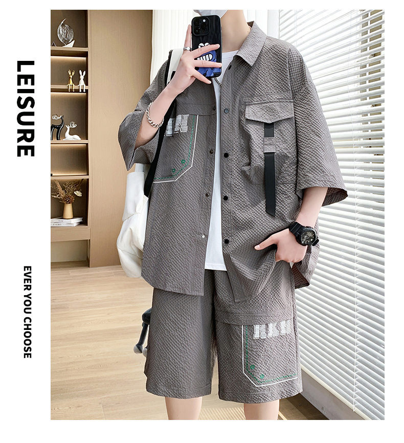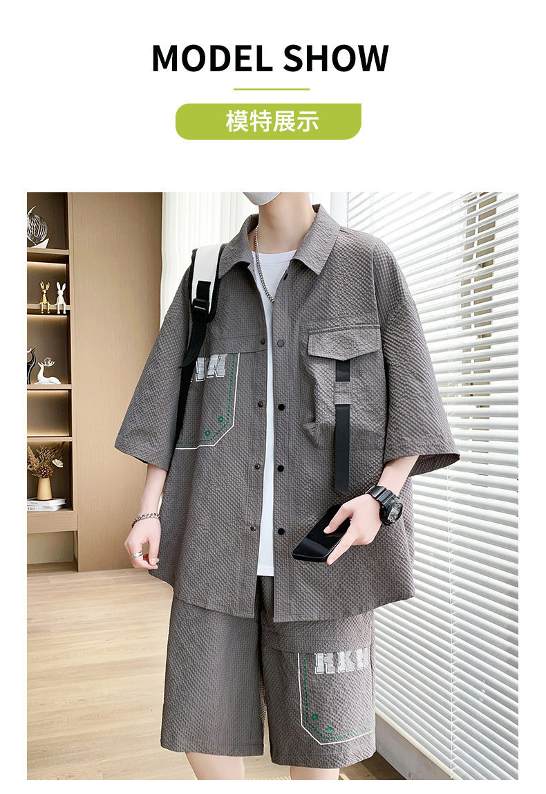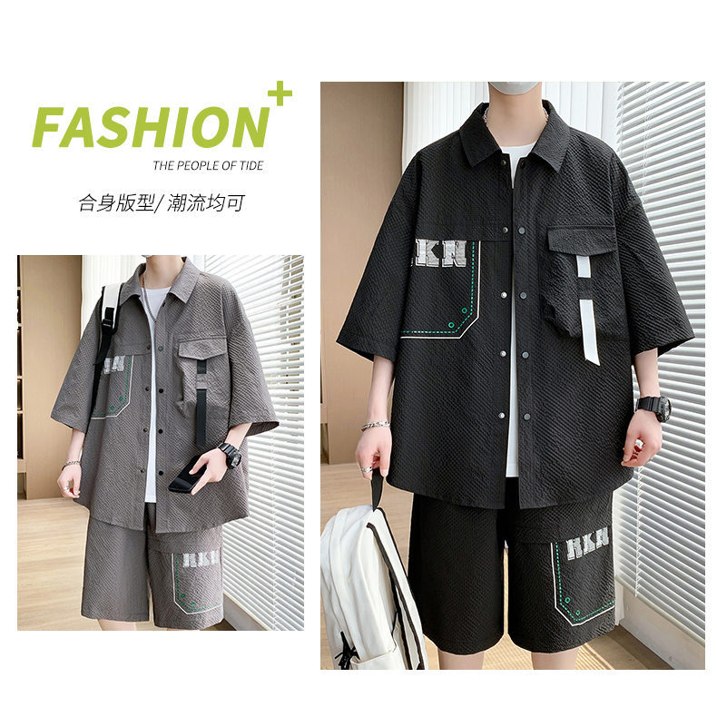 반소매 셔츠 캐주얼 스포츠 세트 남자 여름 2024 새로운 짧은 소매 반바지 옷 세트 착용스토어 가기