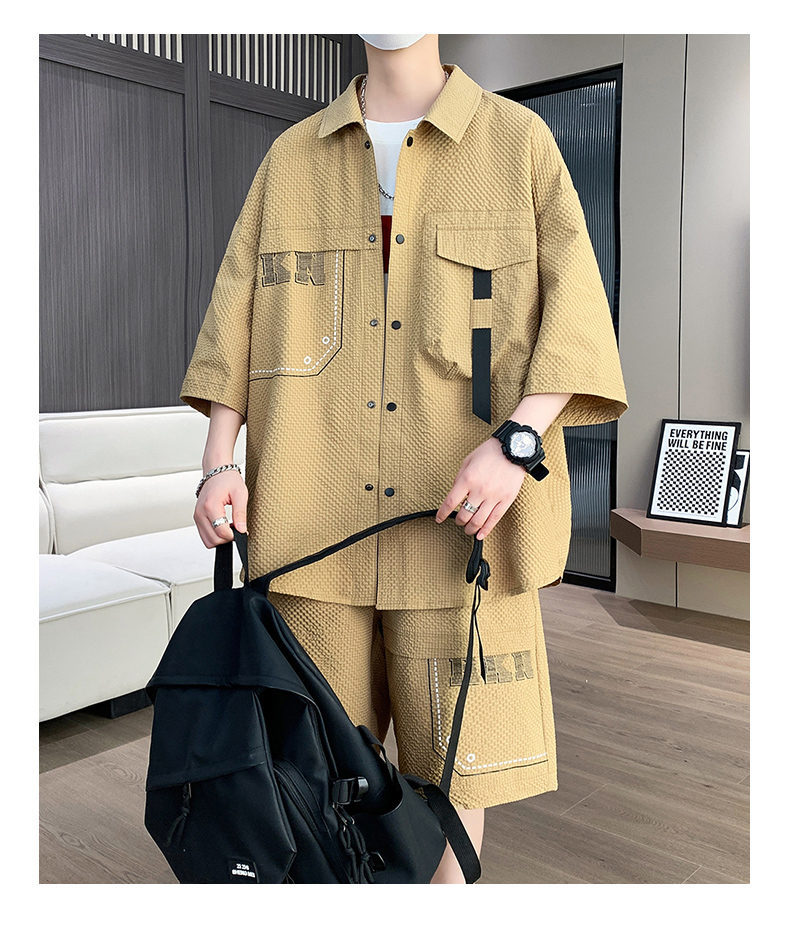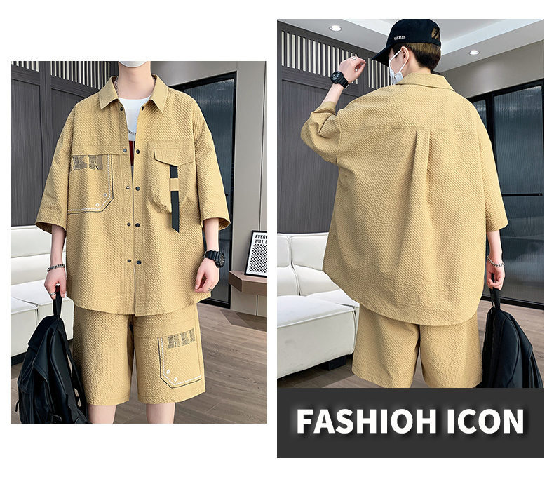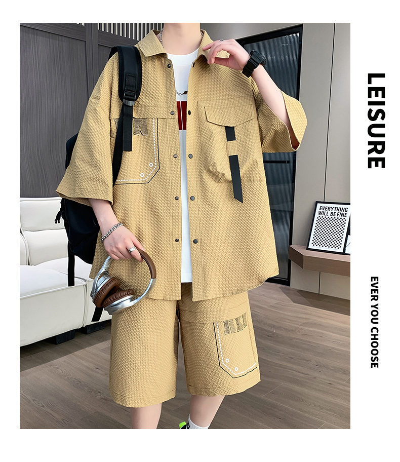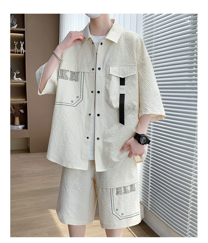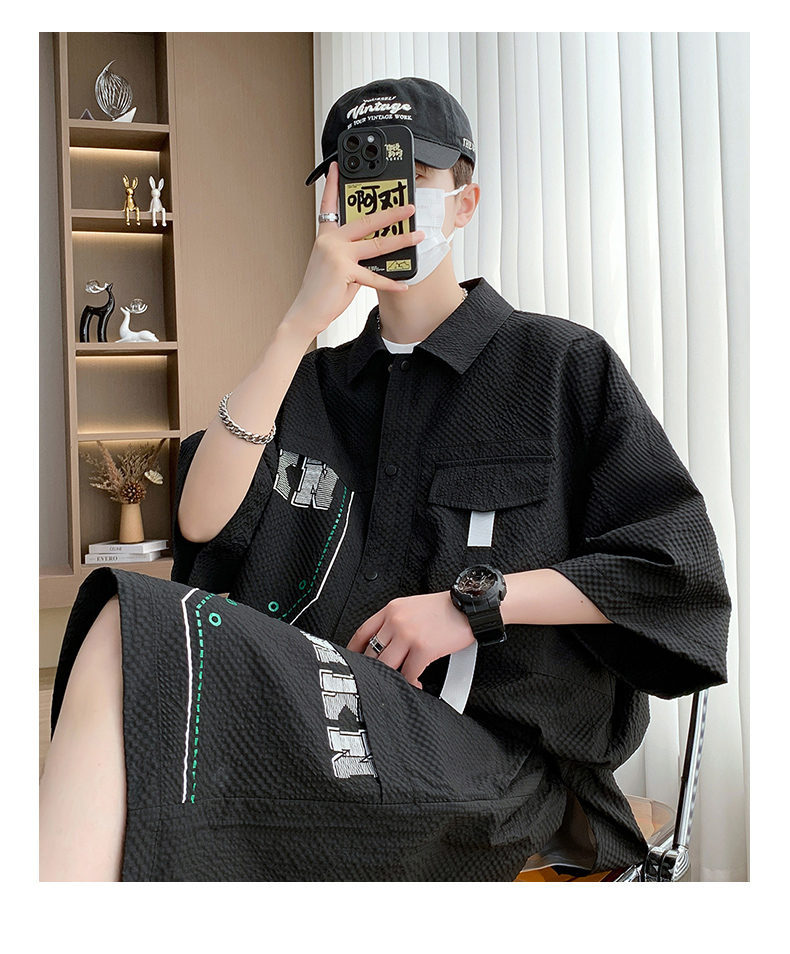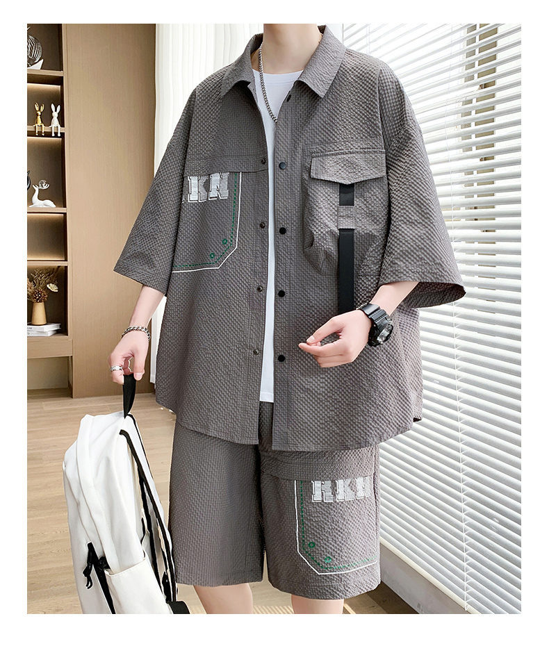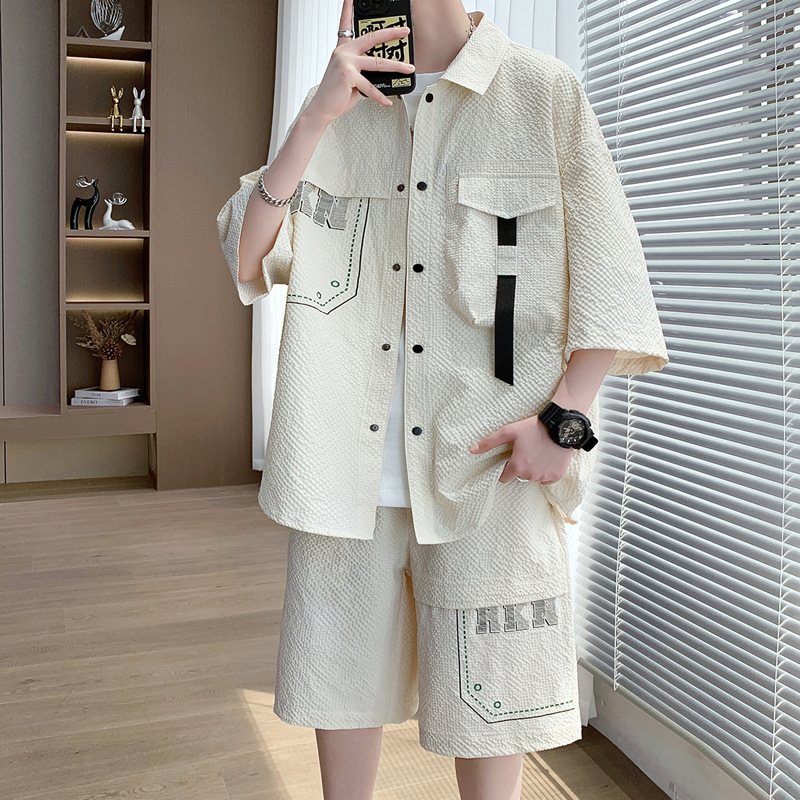반소매 셔츠 캐주얼 스포츠 세트 남자 여름 2024 새로운 짧은 소매 반바지 옷 세트 착용스토어 가기