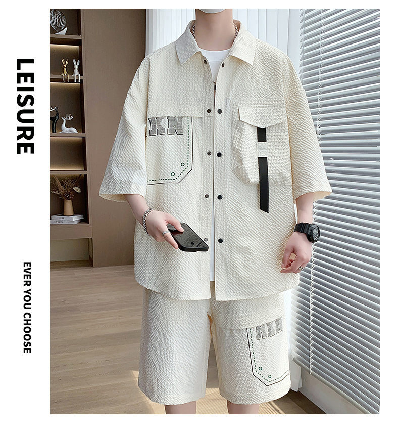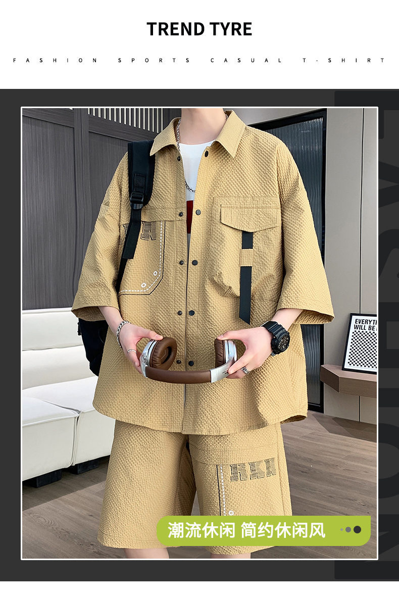 반소매 셔츠 캐주얼 스포츠 세트 남자 여름 2024 새로운 짧은 소매 반바지 옷 세트 착용