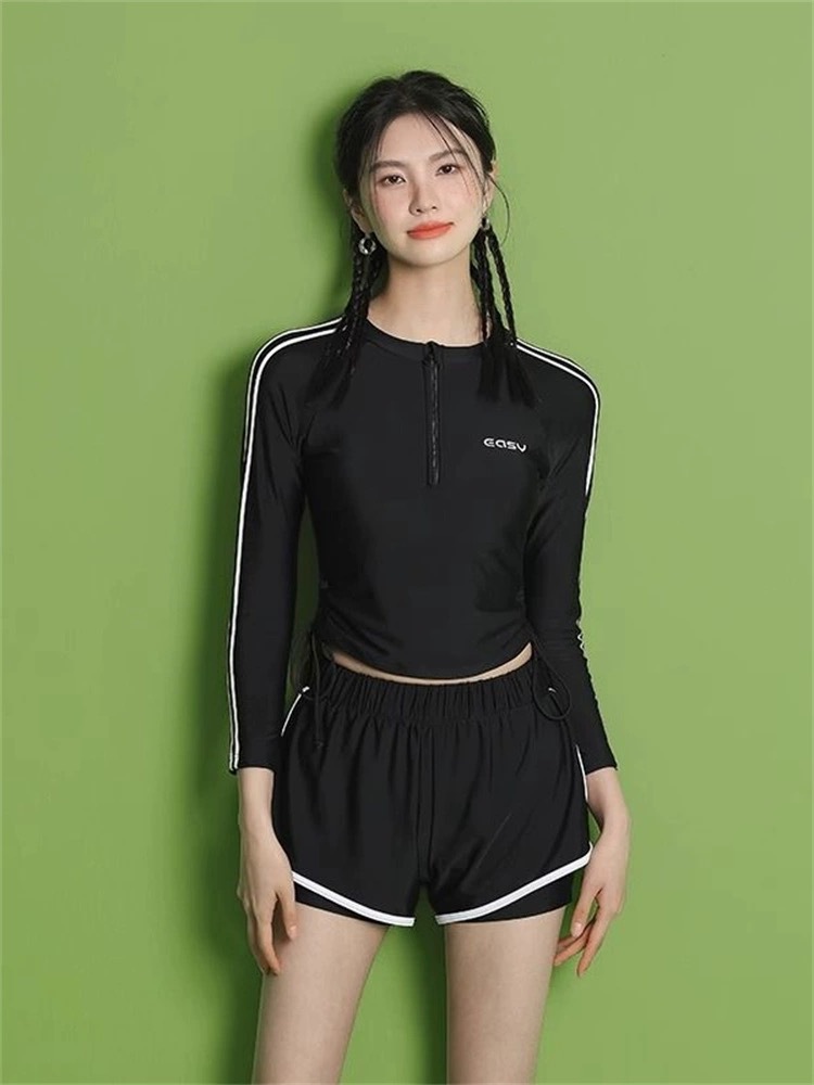 분할 수영복 여성의 2024 년 새로운 폭발 슬림 배꼽 보수 수영장 특별 긴 소매 온천 수영복