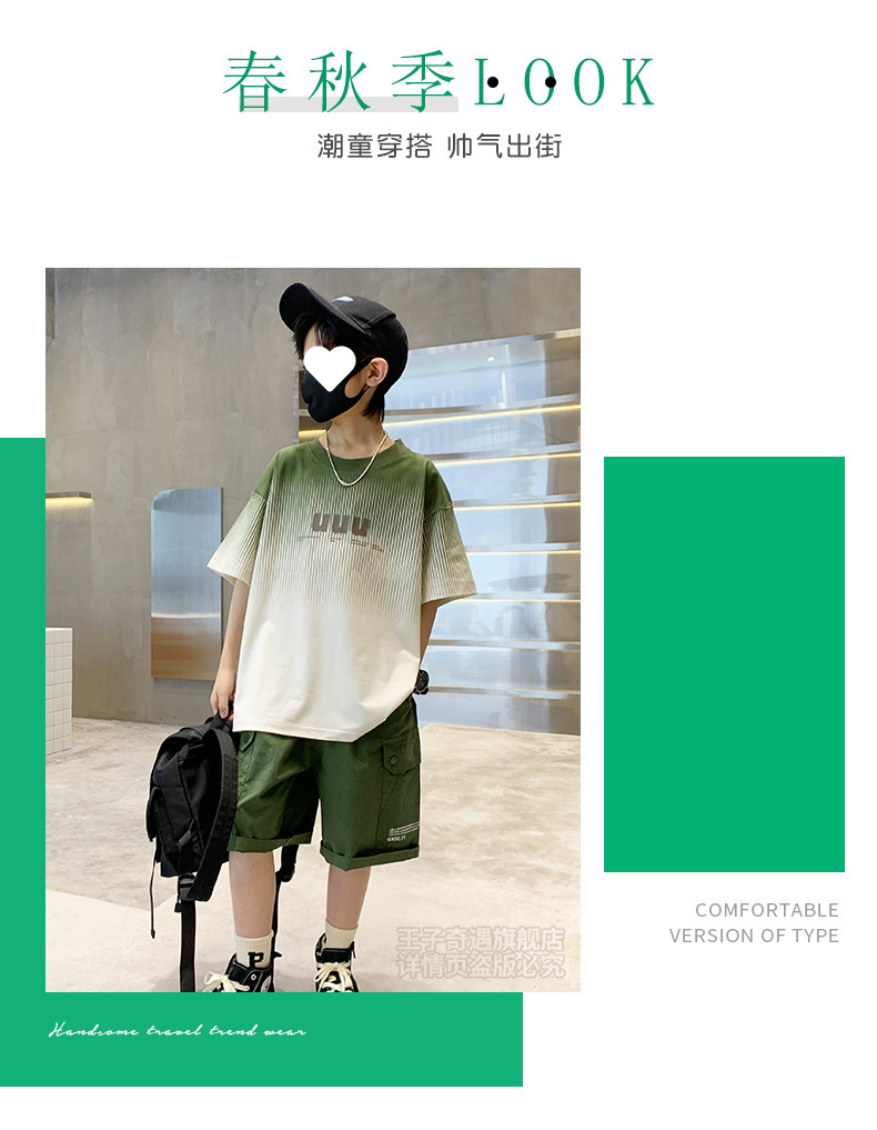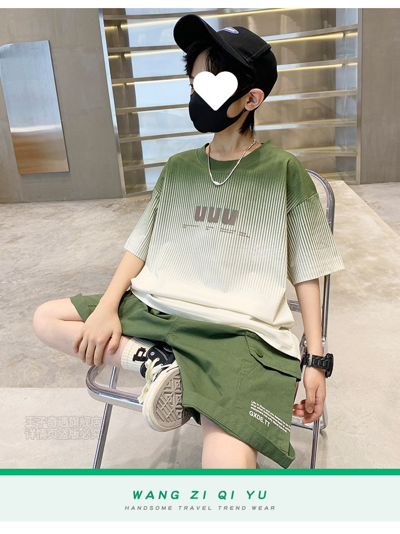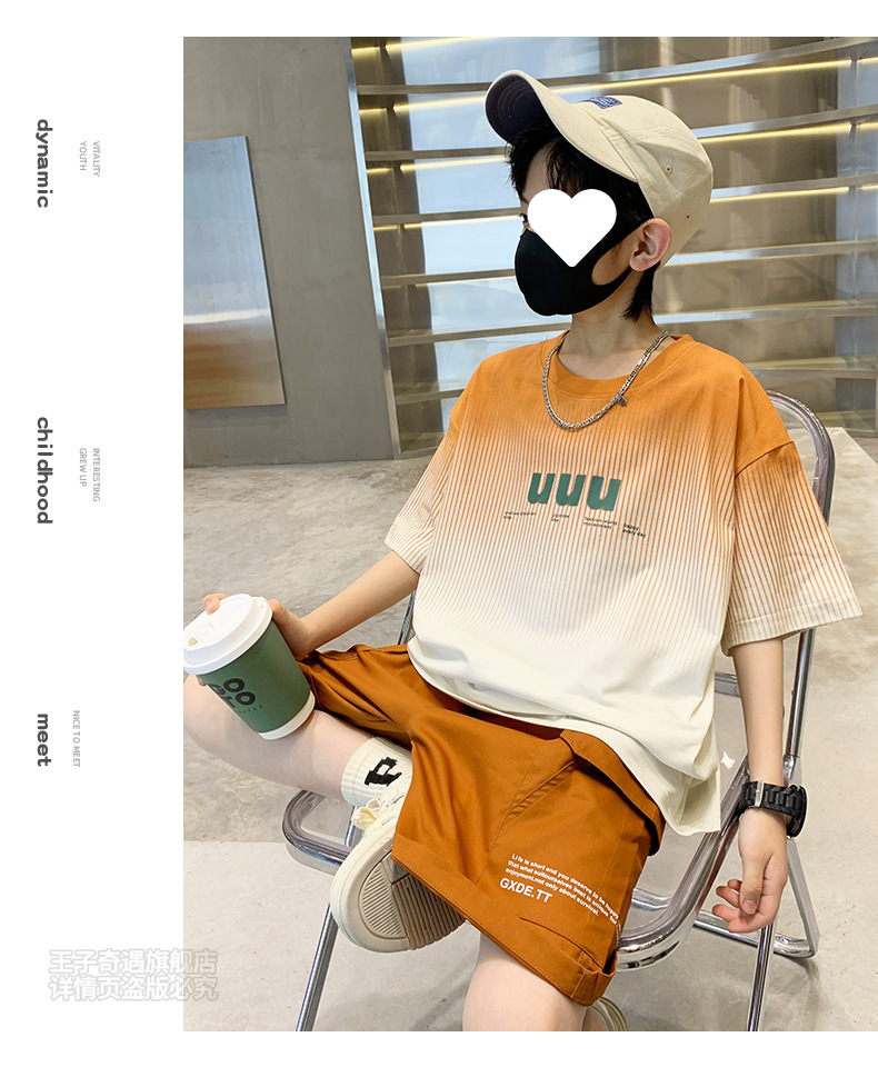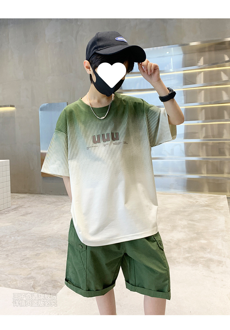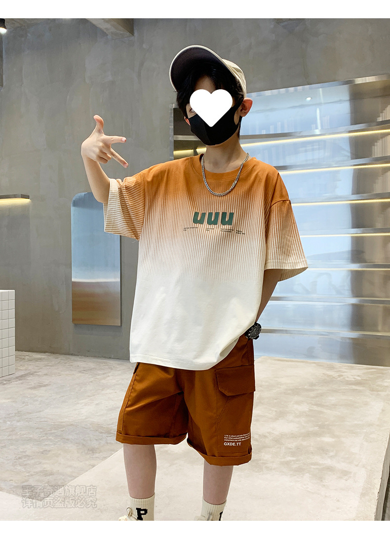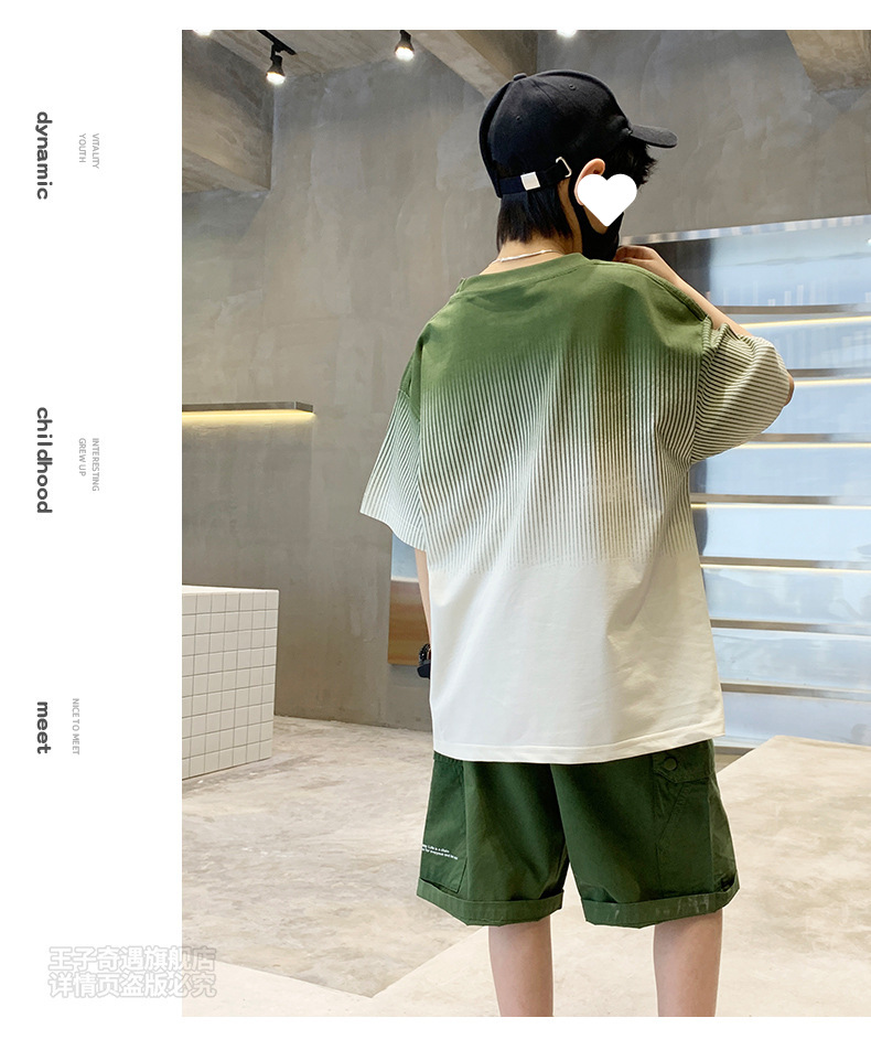 남자들의 여름 세트 캐주얼 세트 2024 새로운 스타일 빅 키즈 그라디언트 티셔츠 작업복 반바지 스포츠 투피스 세트스토어 가기