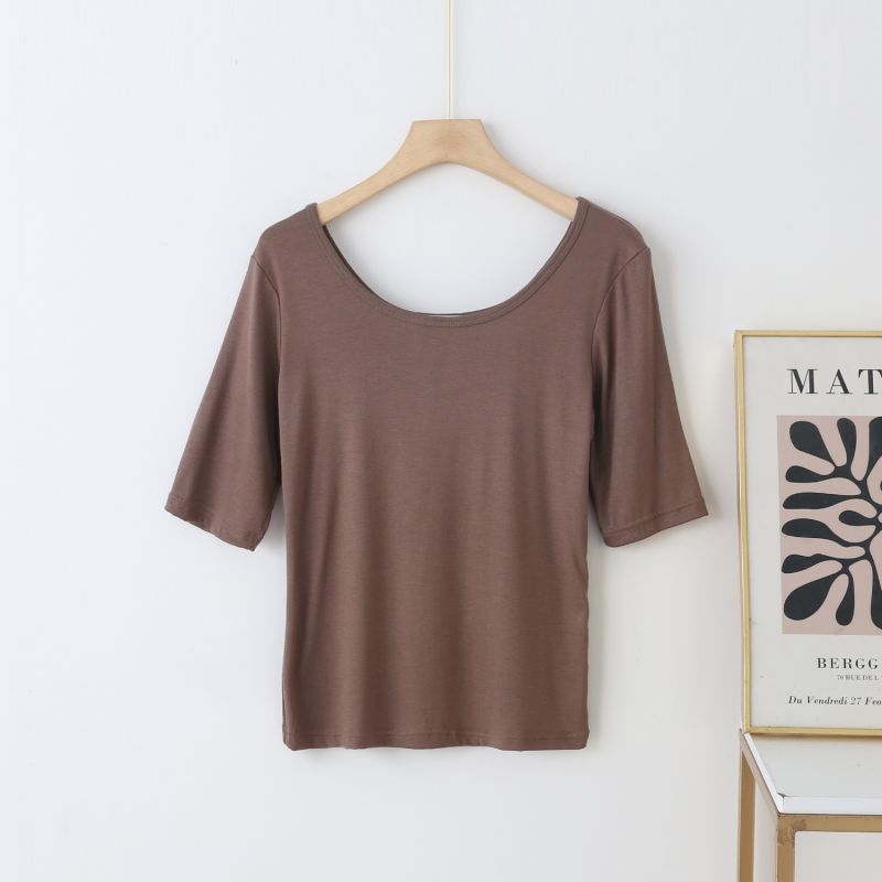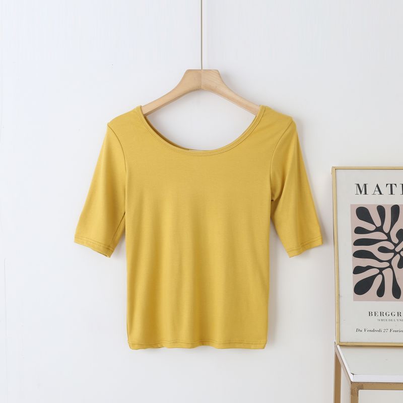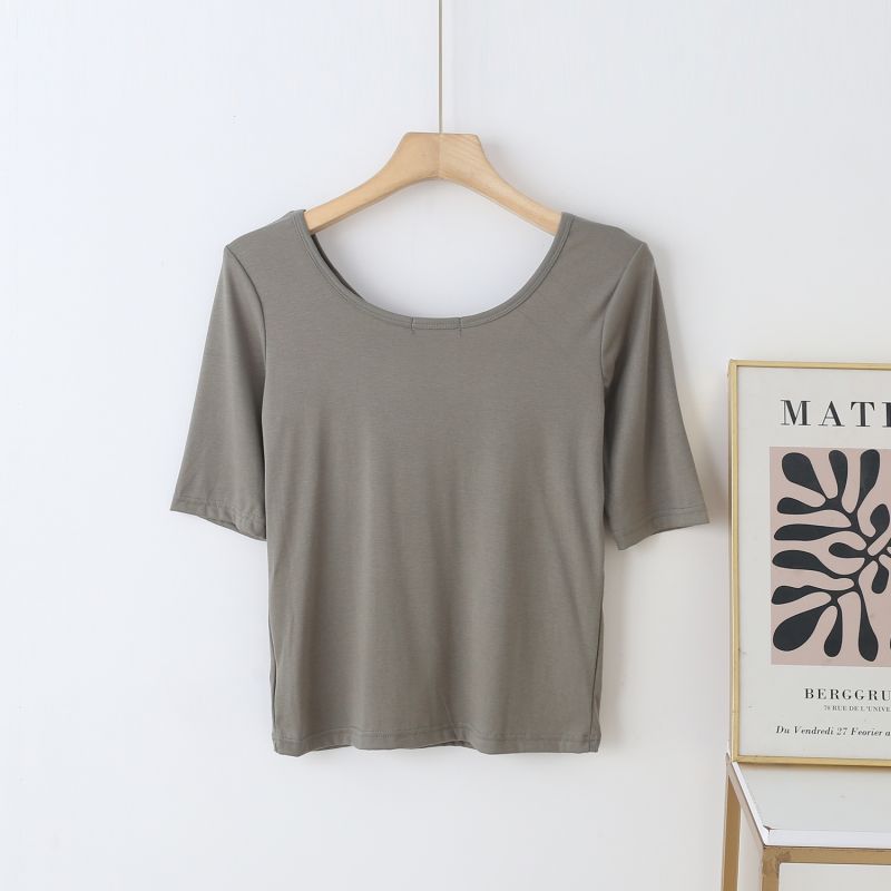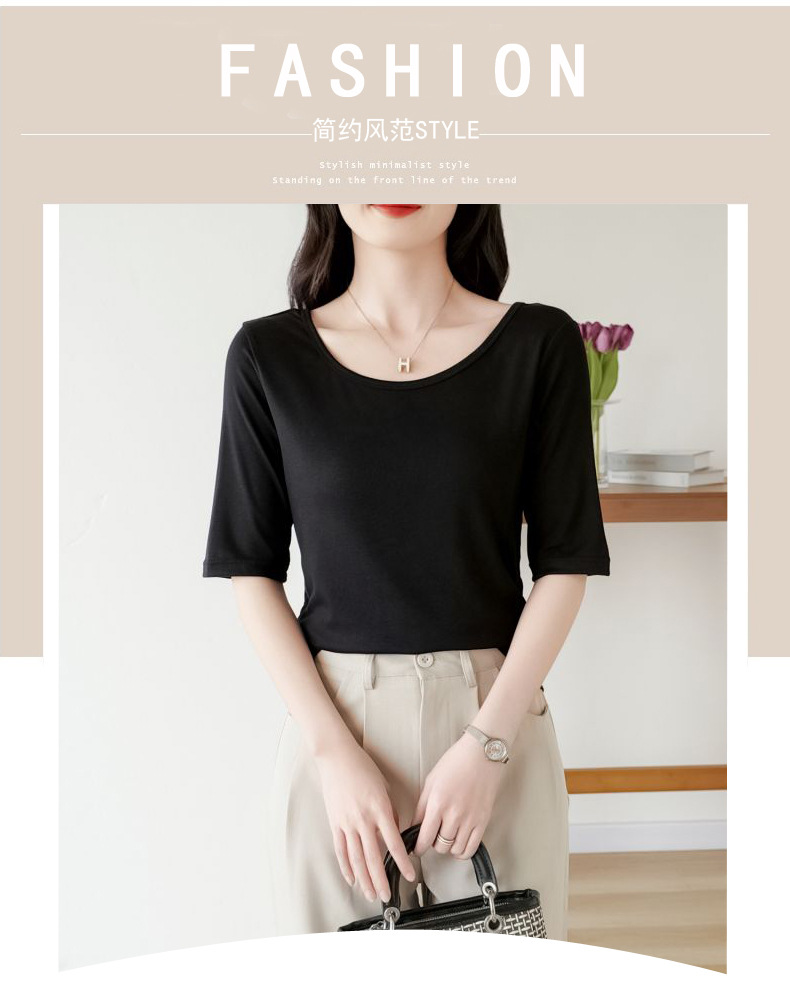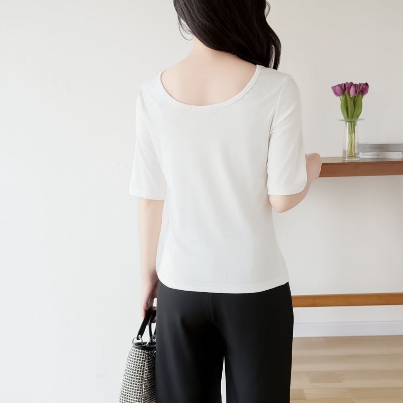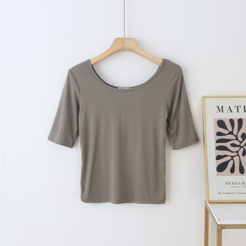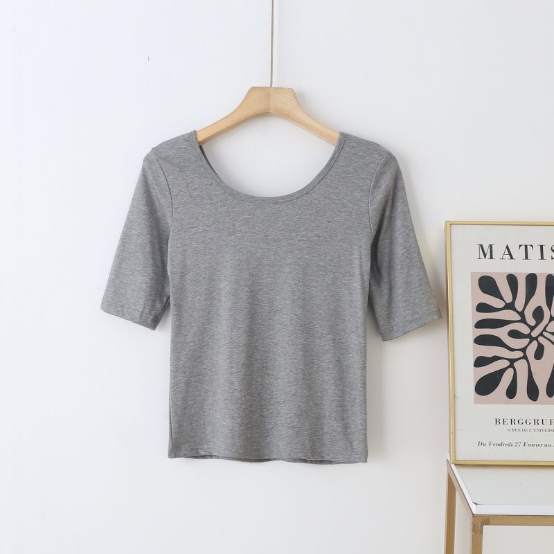 반소매 티셔츠 여자 여름 서양식 올 매치 로우 라운드 섹시 탑 스레드 슬림 핏 슬림 베이스 레이어 셔츠 중소매 티셔츠스토어 가기