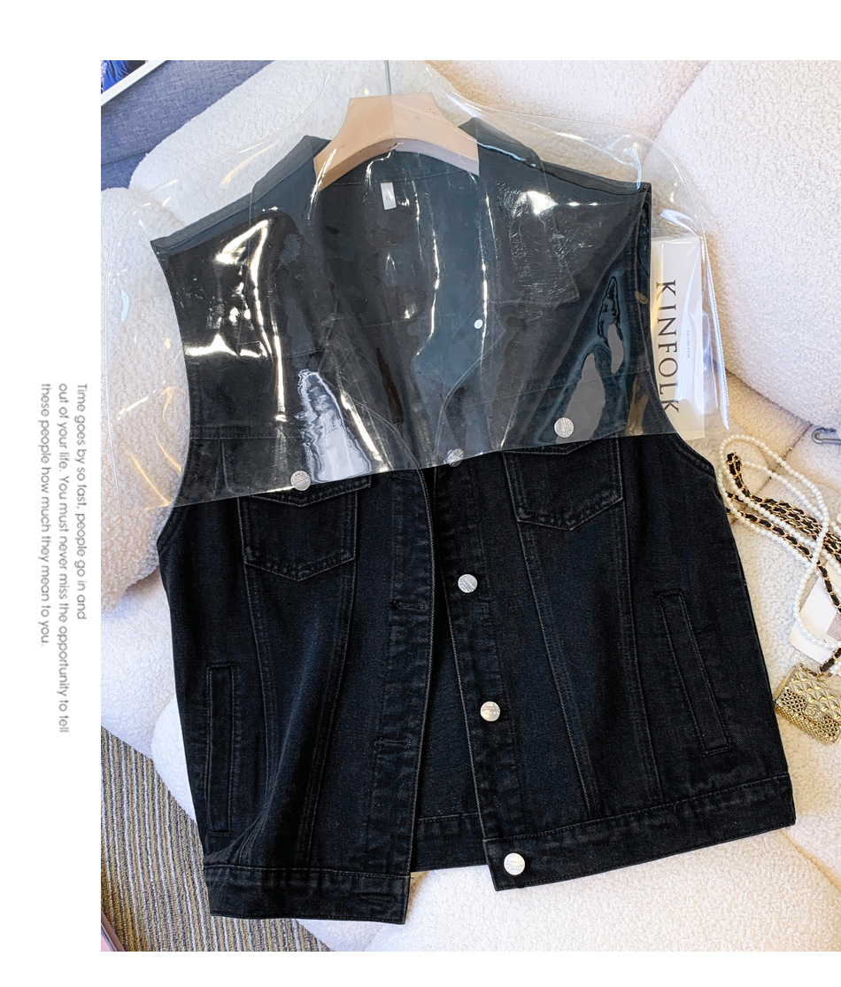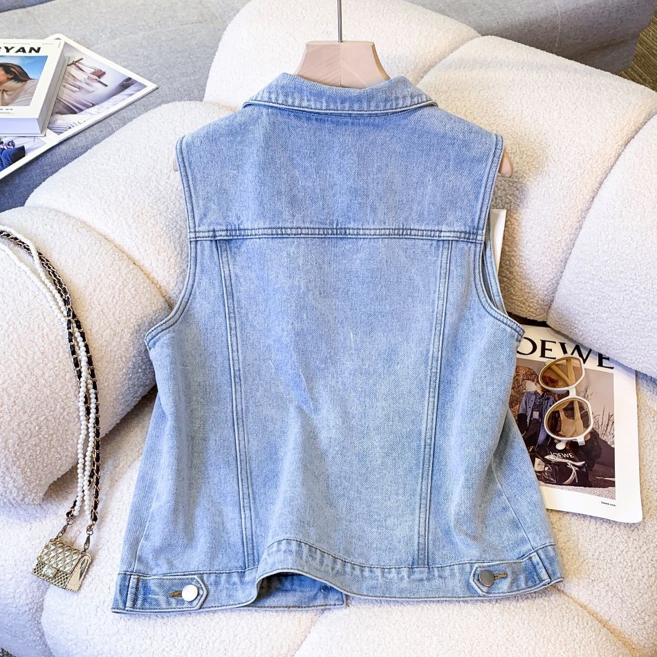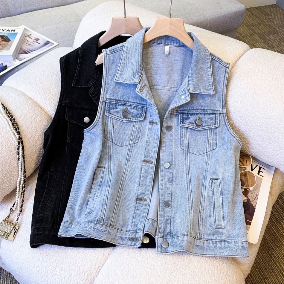 국경 간 대외 무역 여성의 새로운 2024 봄과 여름 데님 조끼 여성 코트 느슨한 옷 재킷 민소매 조끼스토어 가기