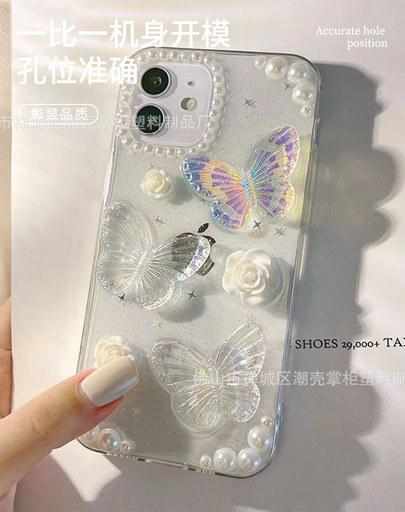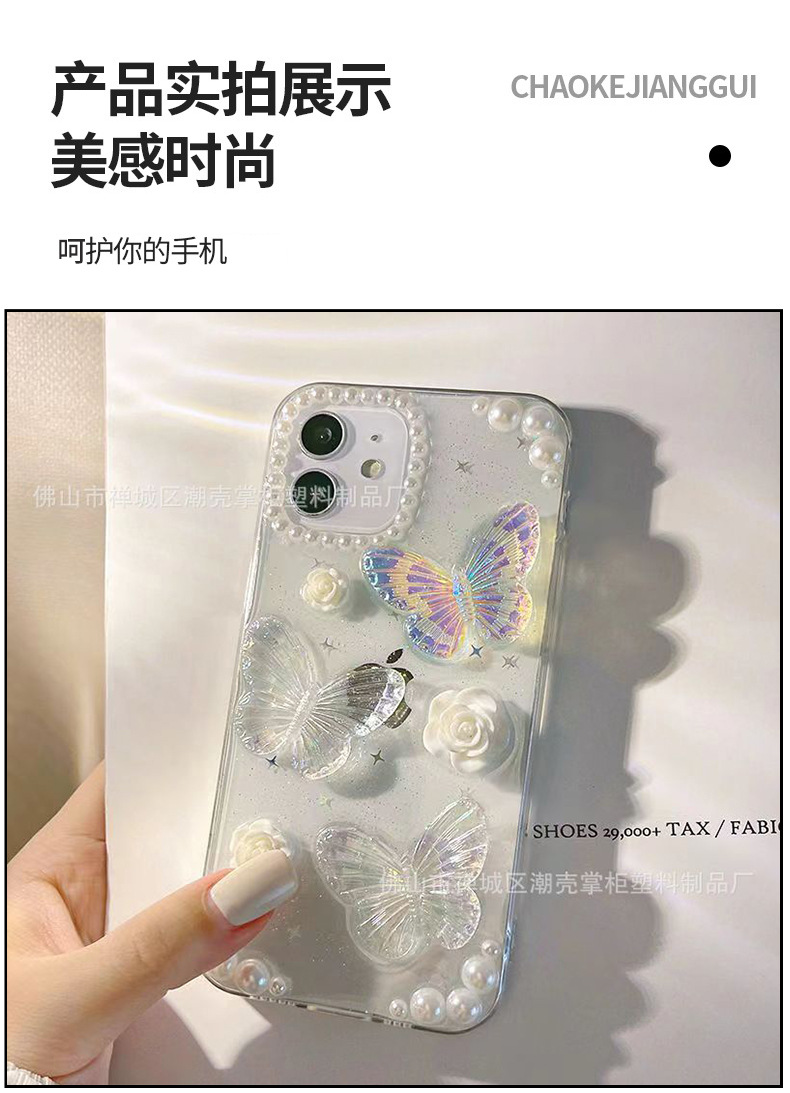 진주 꽃 나비 애플 15 휴대 전화 쉘 IPhone14promax 불멸의 12/13 투명 11 소프트스토어 가기