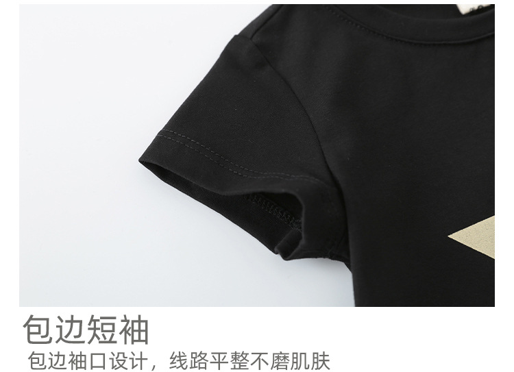 • 짧은 소매와 거즈 스커트가있는 블랙 티셔츠