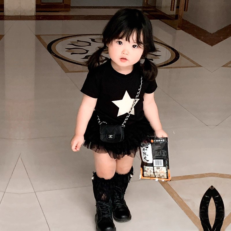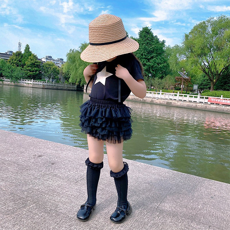 여자 스커트 2025 새로운 공주 스커트 베이비 케이크 거즈 스커트 어린이 투투 스커트 서양식 짧은 검은 티셔츠 6