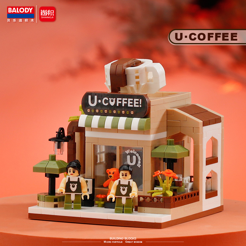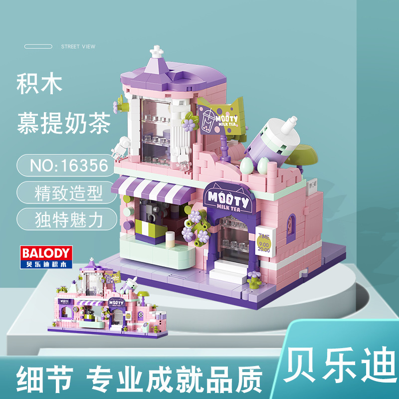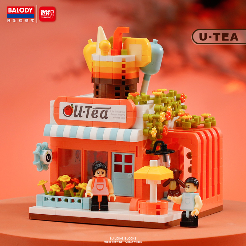 Bei Le Di 16354 우유 차 가게 커피 숍 마이크로 다이아몬드 성인 어린이 교육 조립 건물 블록 장난감 장식품스토어 가기