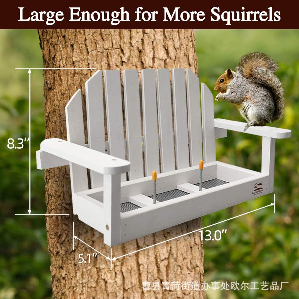 흰색 벤치 다람쥐 다람쥐 피더 메쉬 바닥 옥수수 속 나무 다람쥐 피더 스탠드스토어 가기
