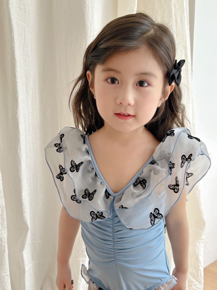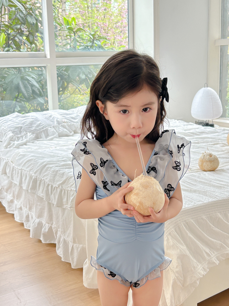 소녀 2024 새로운 세련된 귀여운 원피스 수영복 아기 소녀 비키니 어린이 여름 패션 V 넥 수영복