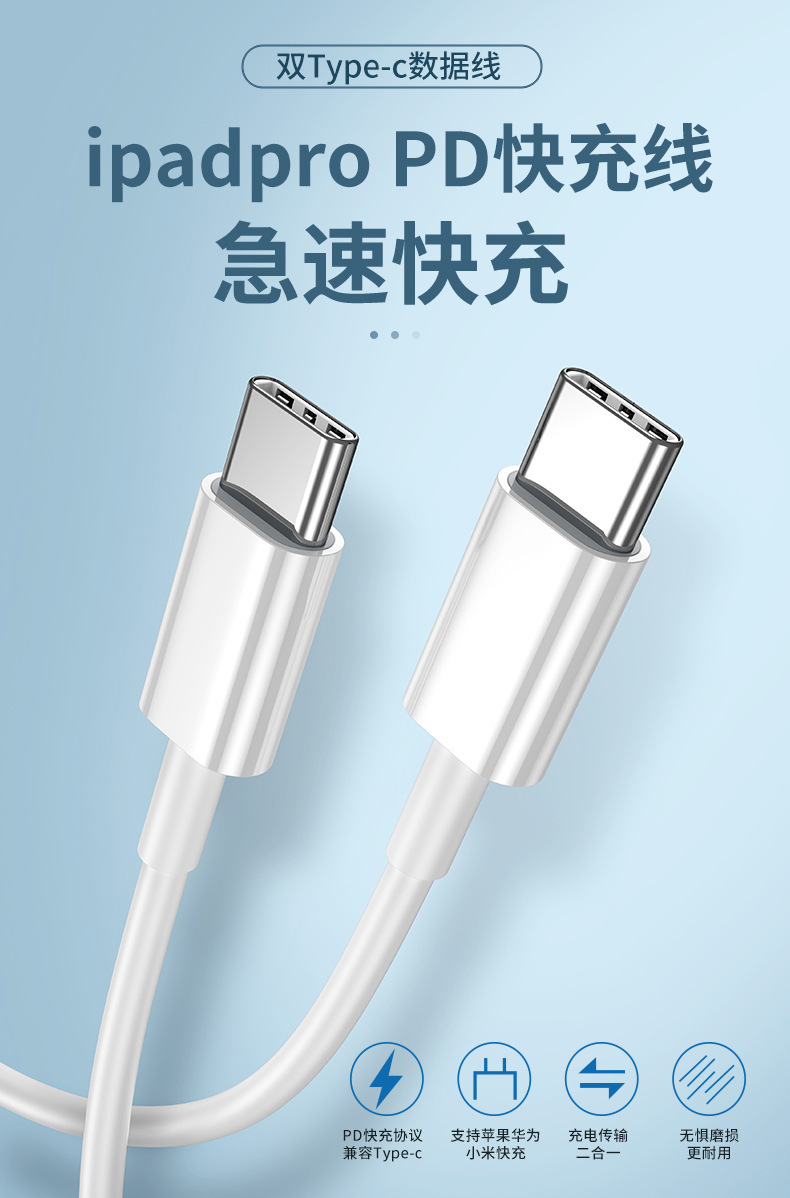 국경 간 자동차 PD 고속 충전 데이터 케이블 내구성 더블 헤드 타입-c 휴대 전화 노트북 CTOC 충전 케이블에 적합스토어 가기