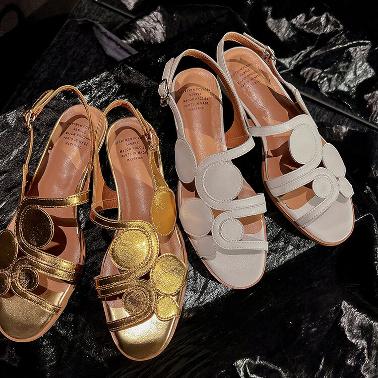골드 피스 발가락 패션 샌들 여성용 저힐 여름 새 머리 레이어 Cowhide 라운드 발가락 할로우 아웃 여성용 샌들스토어 가기