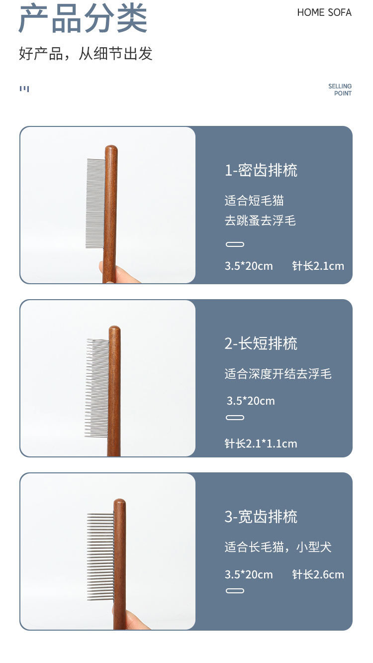 애완 동물 고양이 개 벼룩 빗 행 빗 치밀한 고양이 빗 단단한 나무 스트레이트 행 빗 곰 테디 스틸 빗 벼룩 빗스토어 가기
