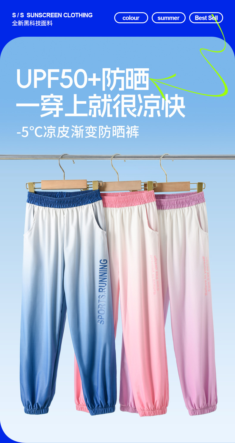 남학생과 여아 모기 방지 바지 여름 얇은 Upf50 어린이 태양 보호 바지 아이스 실크 빠른 건조 스포츠 바지 여름 착용