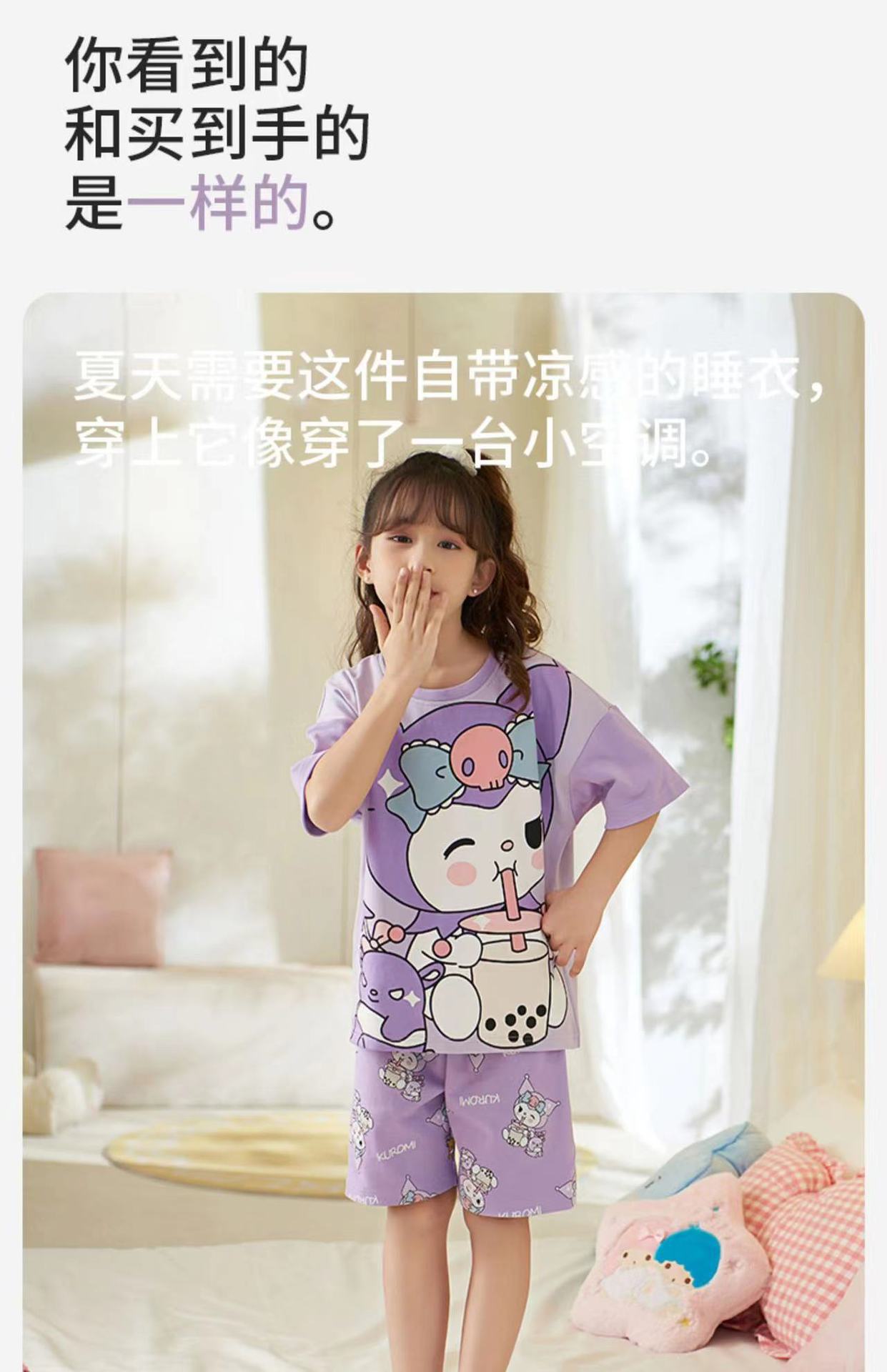 새 여자 잠옷 여름 반팔 얇은 어린이 만화 큰 어린이 및 어린 소녀의 집 세트스토어 가기