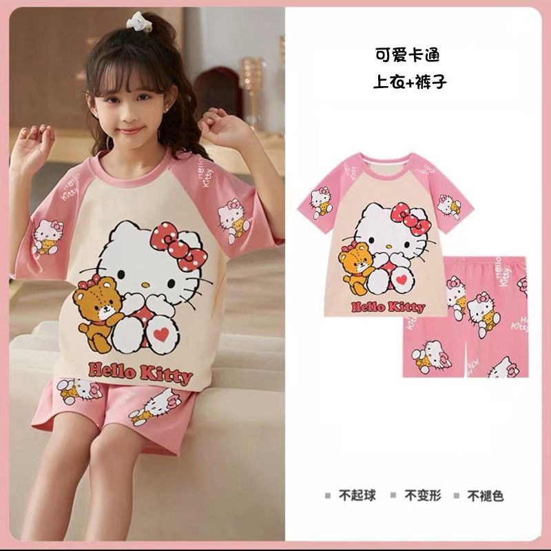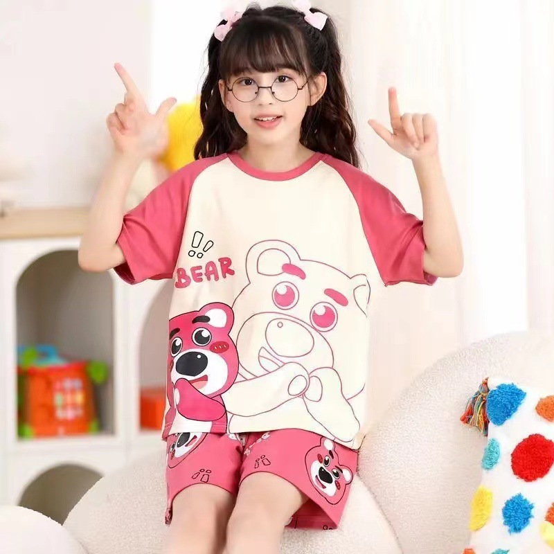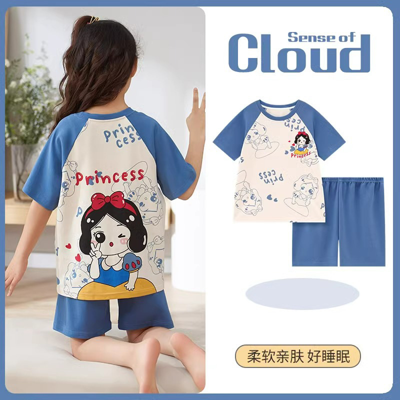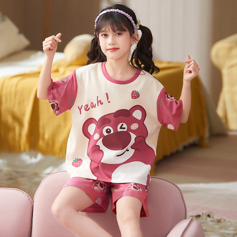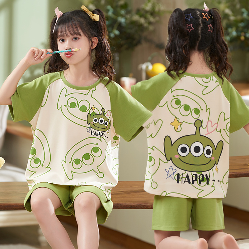 새 여자 잠옷 여름 반팔 얇은 어린이 만화 큰 어린이 및 어린 소녀의 집 세트