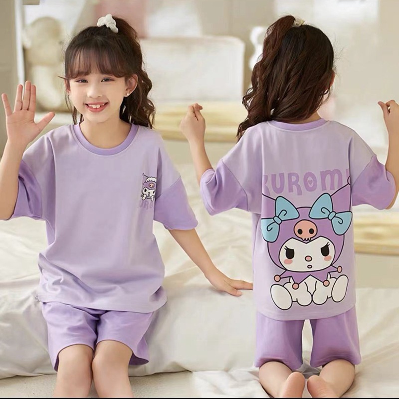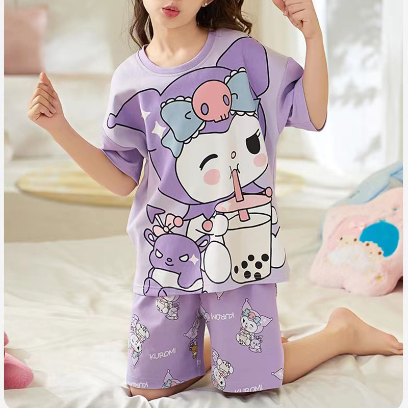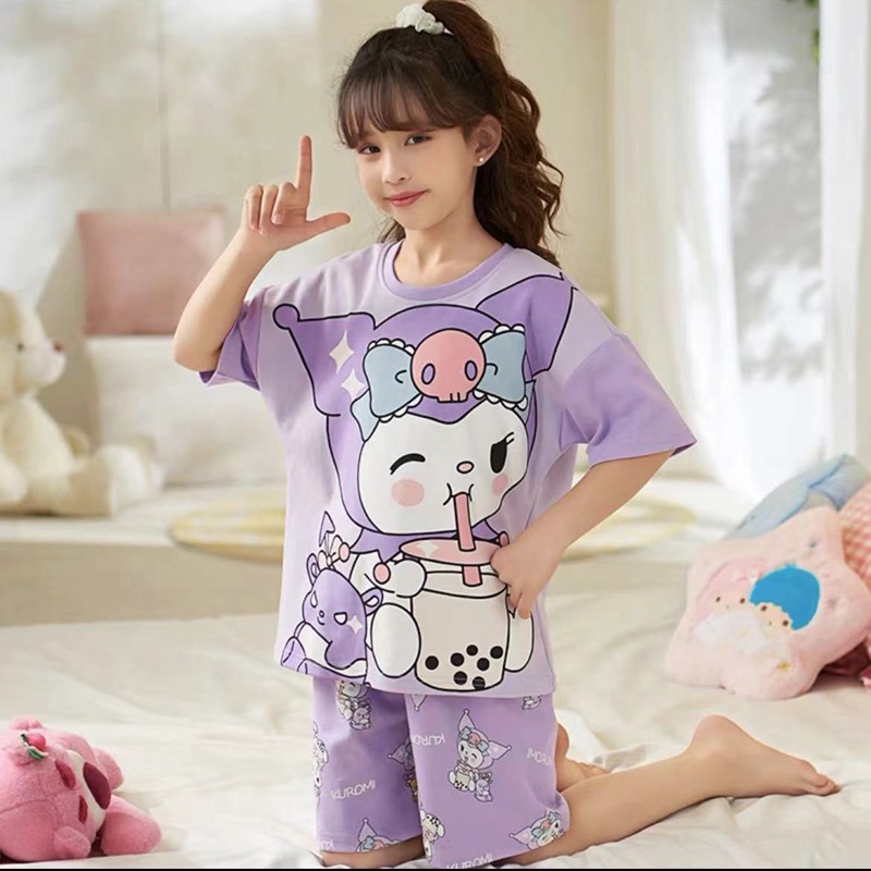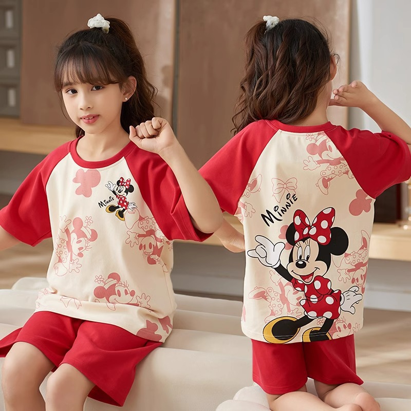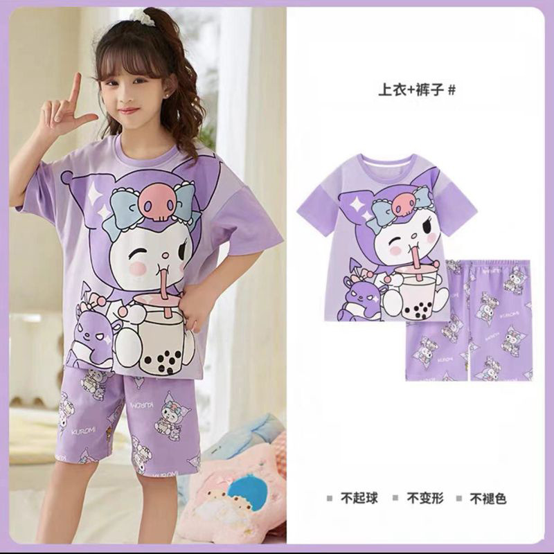 새 여자 잠옷 여름 반팔 얇은 어린이 만화 큰 어린이 및 어린 소녀의 집 세트