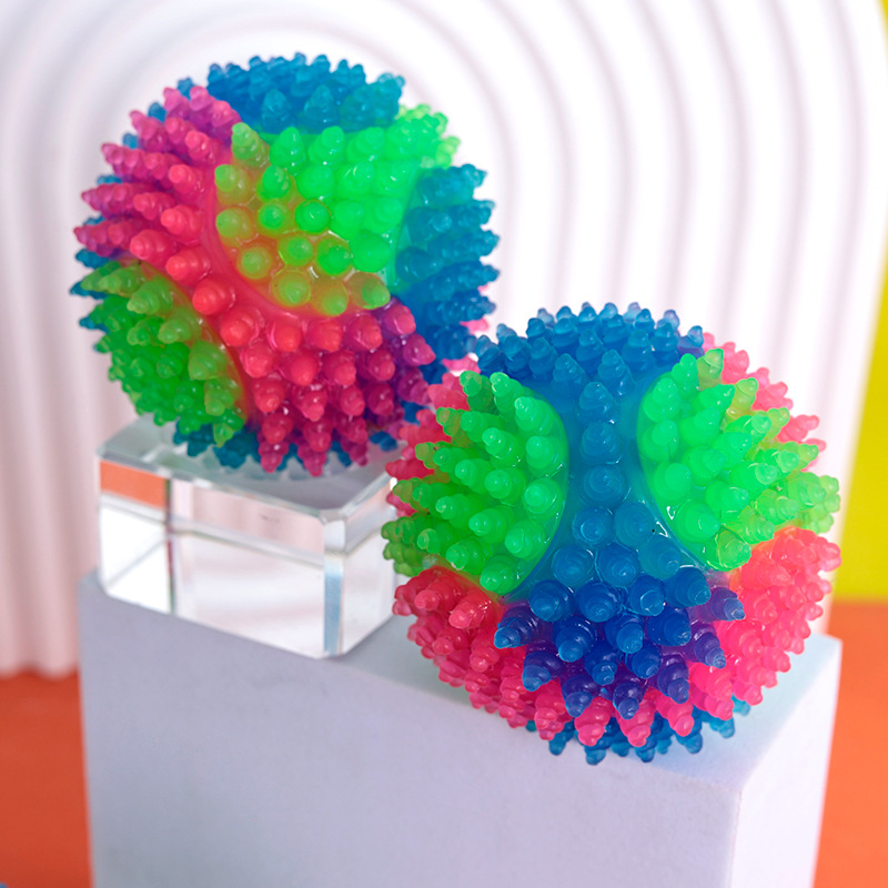 국경 간 애완 동물 장난감 개 어금니 치아 청소 마사지 공 6 개 접합 가시 소프트 바이트 저항하는 투척 발광 공스토어 가기
