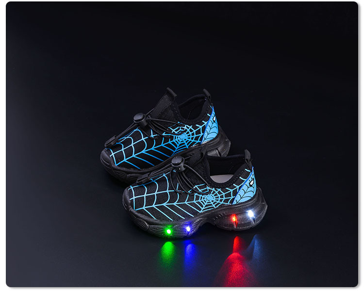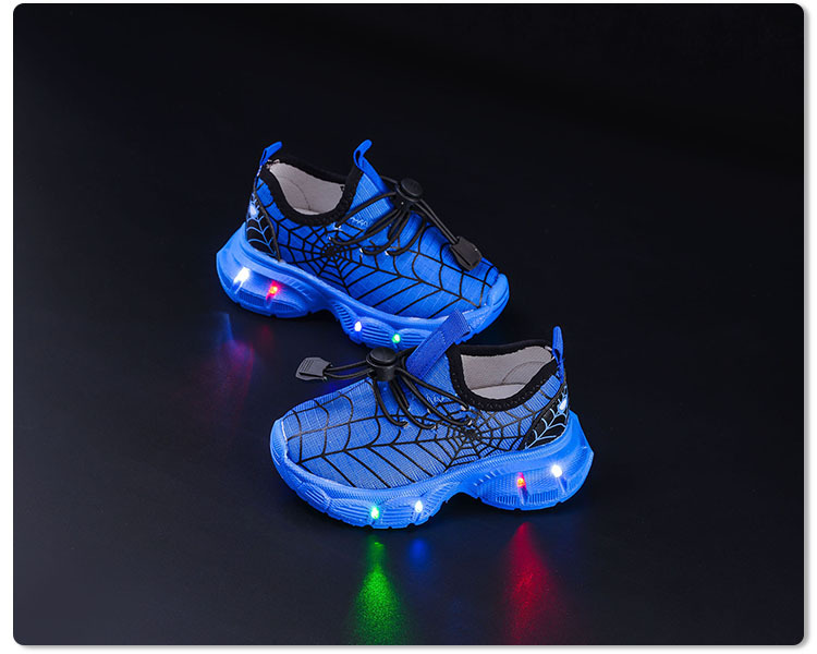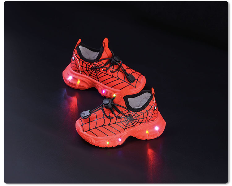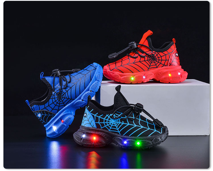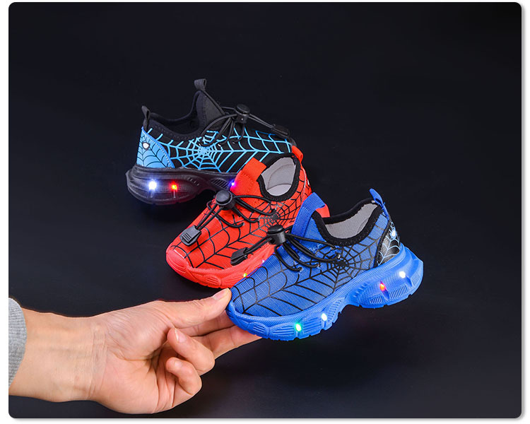 봄과 가을 새로운 어린이 스포츠 신발 스파이더 맨 LED 빛나는 신발 1-6 세 소년 스포츠 통기성 편안한 캐주얼 신발